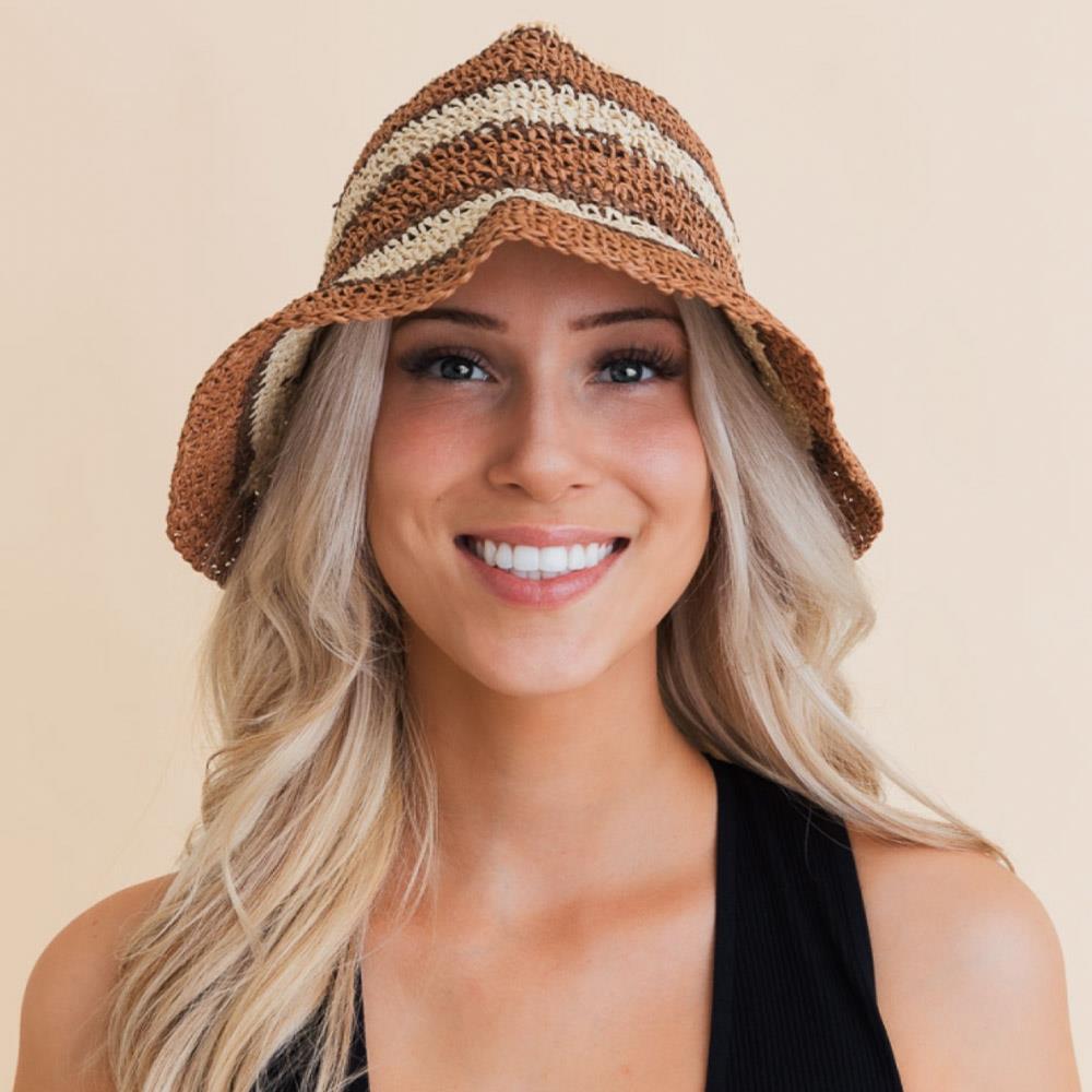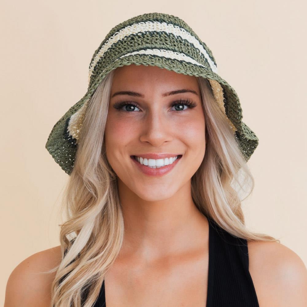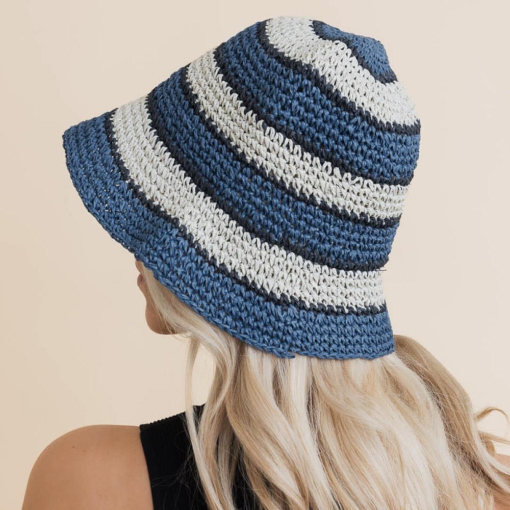 TEXTURED STRIPED CROCHET BUCKET HAT – CASUAL CHIC LOOK