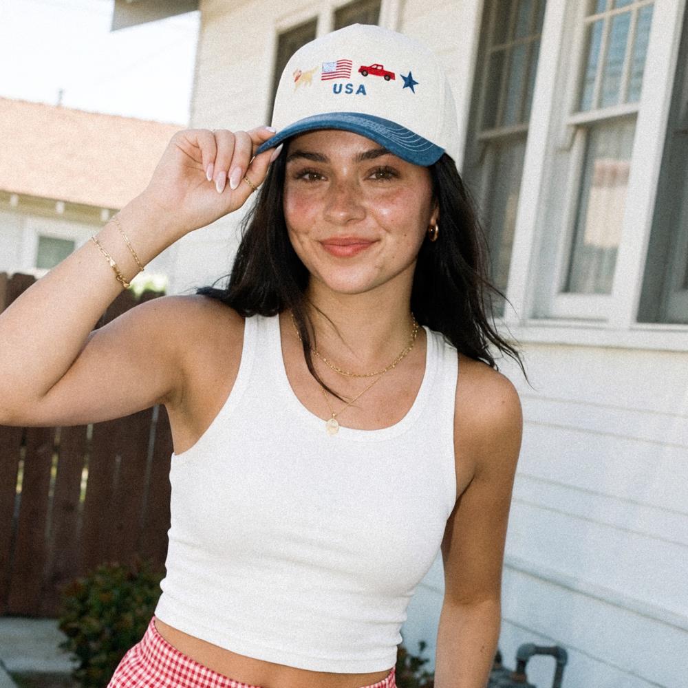 DISTRESSED COWBOY HAT WITH THE LETTERS USA AND AMERICAN FLAG DESIGN