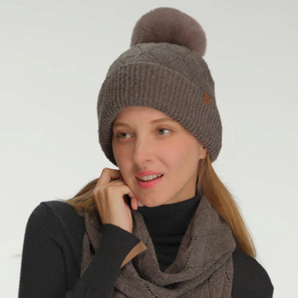 NORDIC POM BEANIE W/ FUR LINING