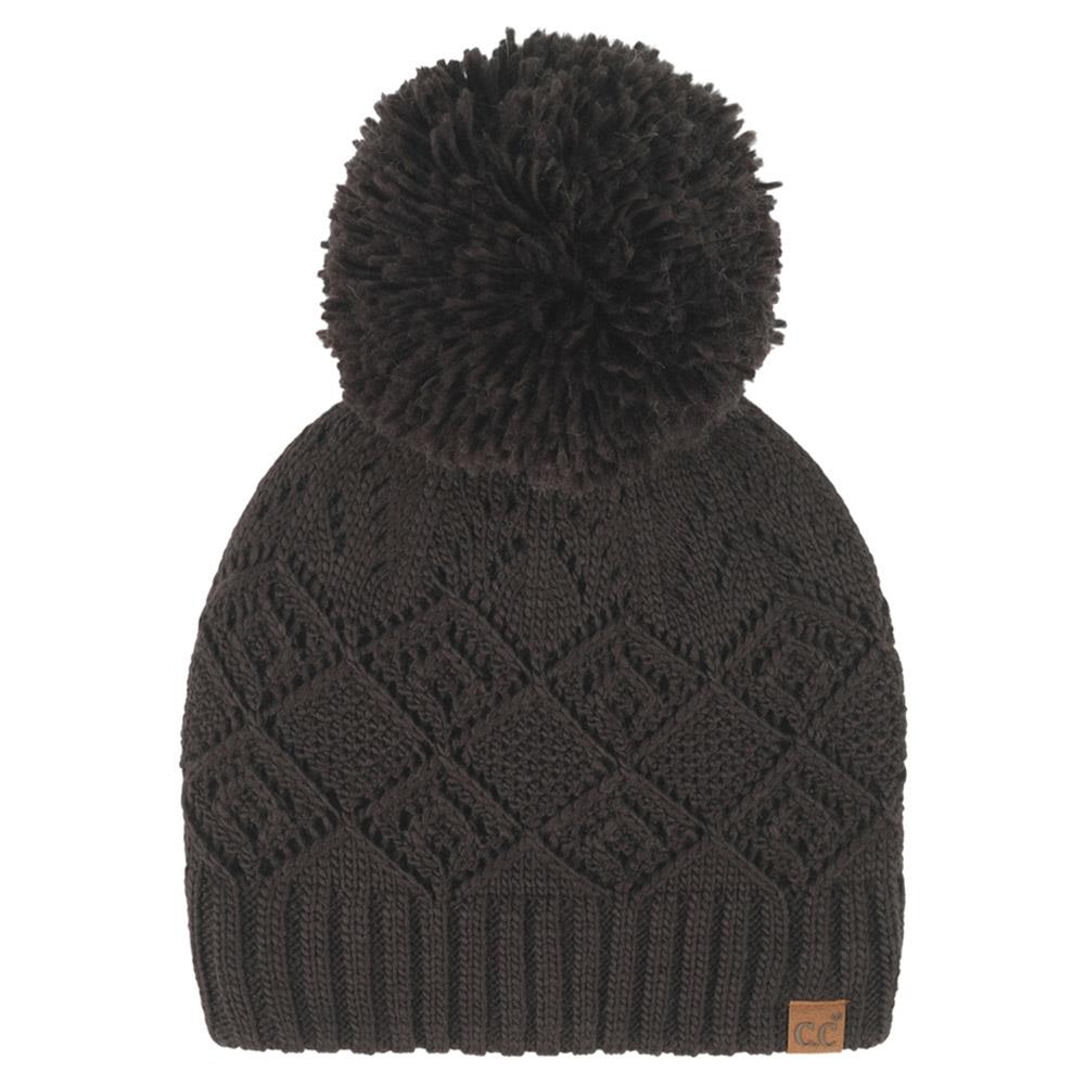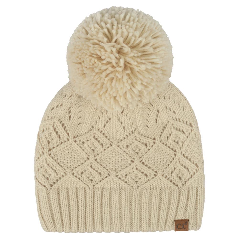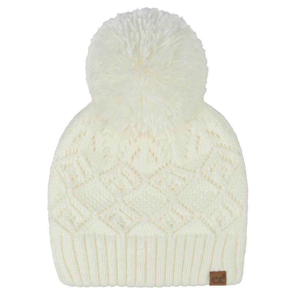 CC DIAMOND LACE PATTERN YARN POM POM BEANIE