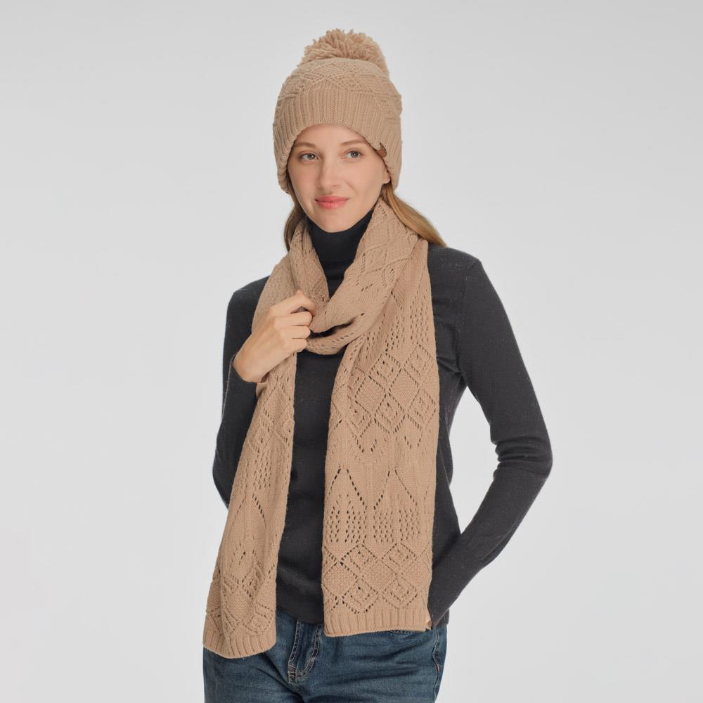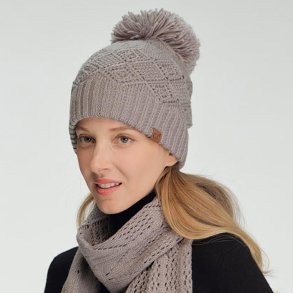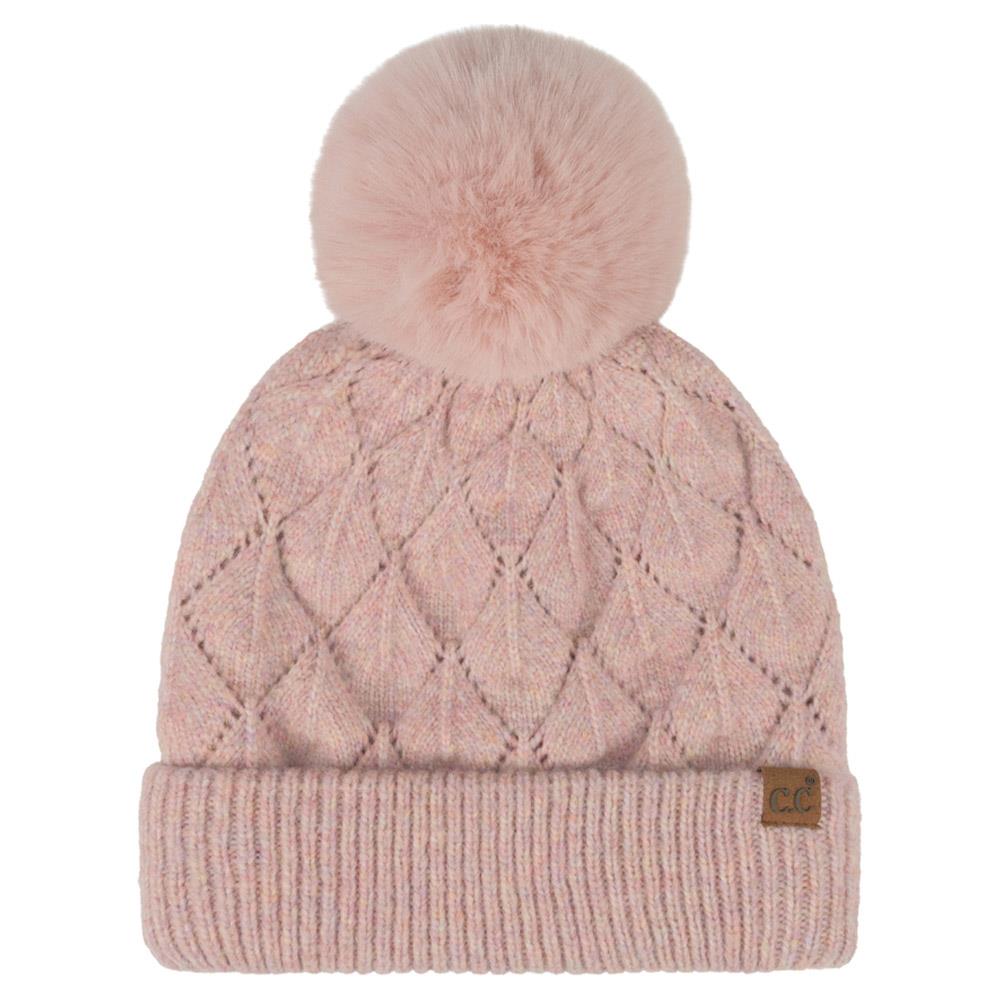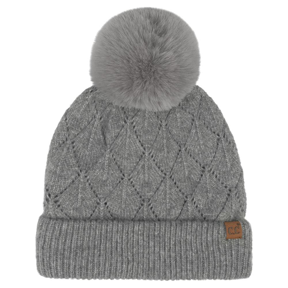 CC DIAMOND LACE PATTERN YARN POM POM BEANIE