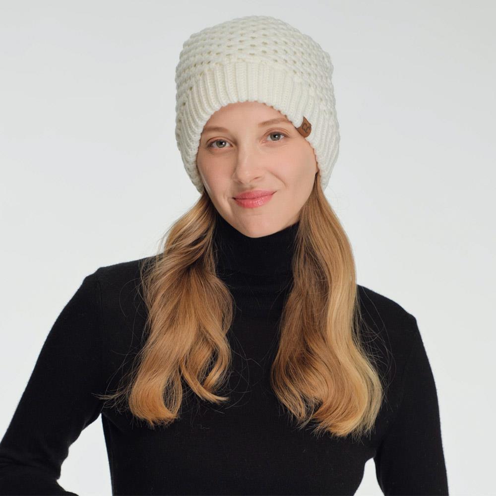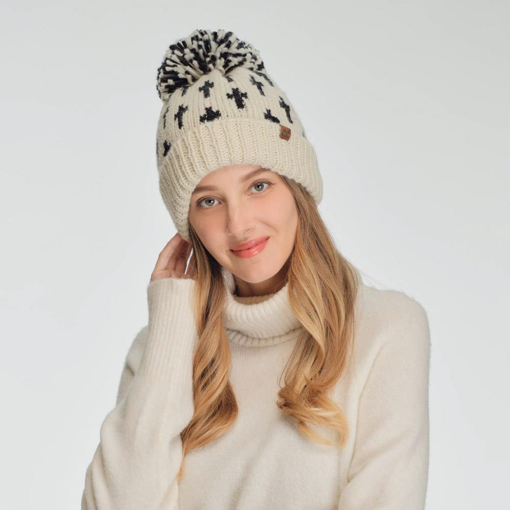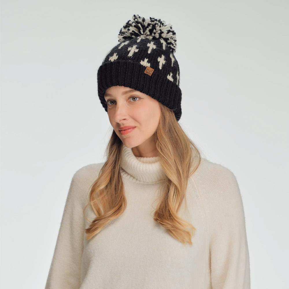 CC ALL OVER CROSS PATTERN YARN POM BEANIE