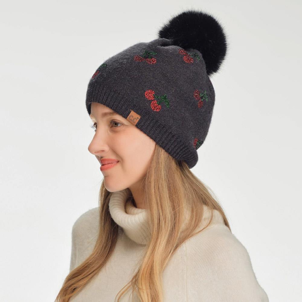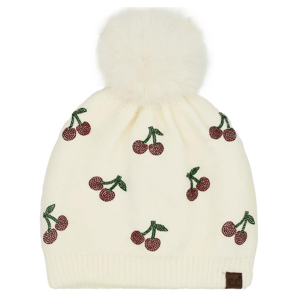 CC CHERRY RHINESTONE POM BEANIE