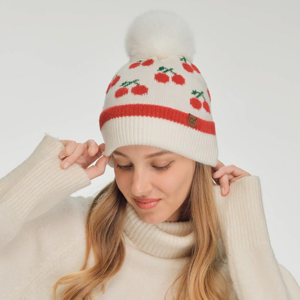 CHERRY POM POM BEANIE