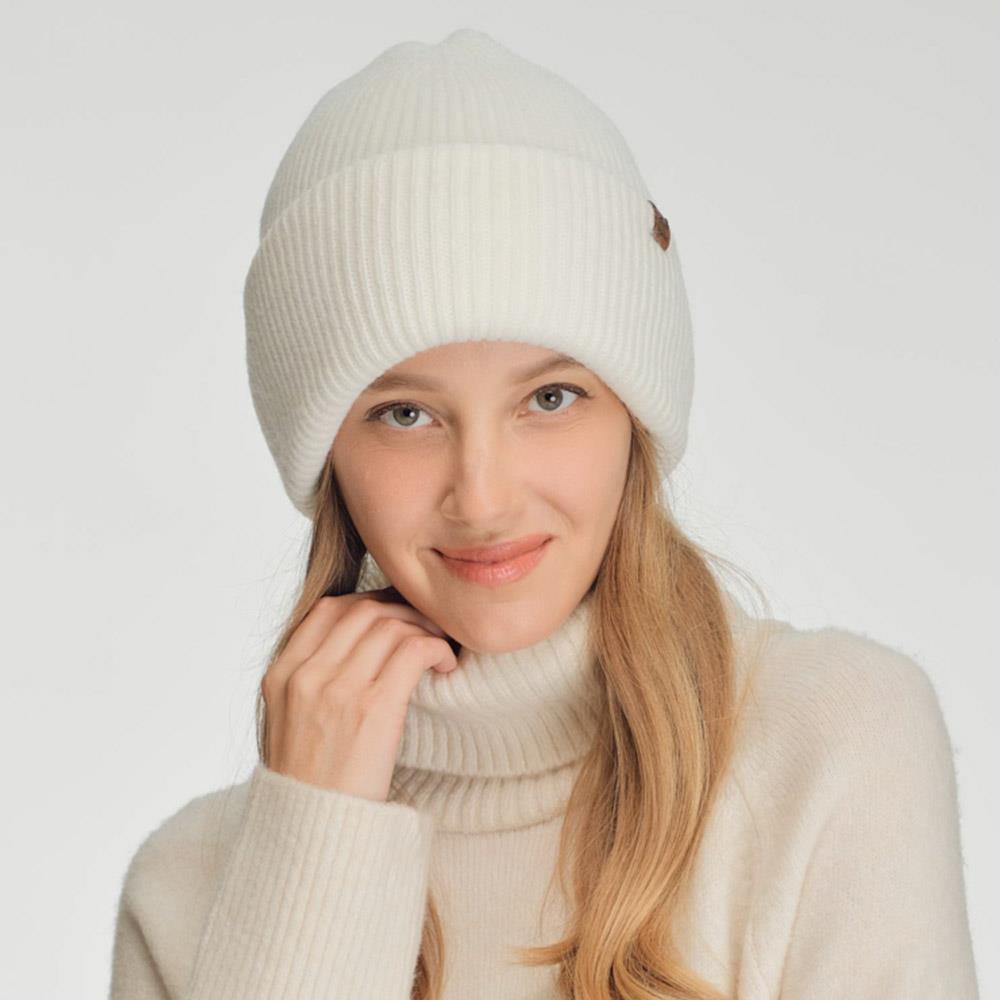 CC FEATHER YARN CUFF BEANIE WITH A STRIPE