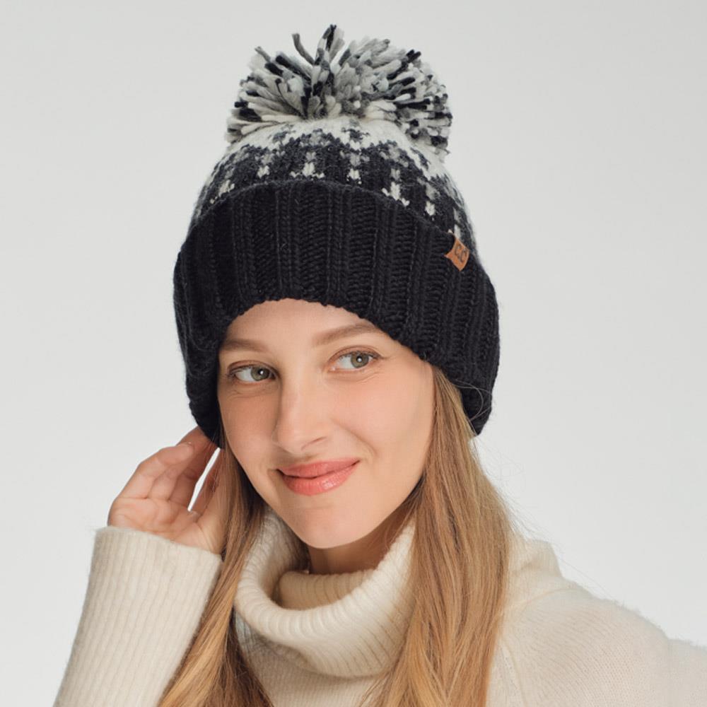 CC FAIR ISLE PATTERN YARN POM POM BEANIE