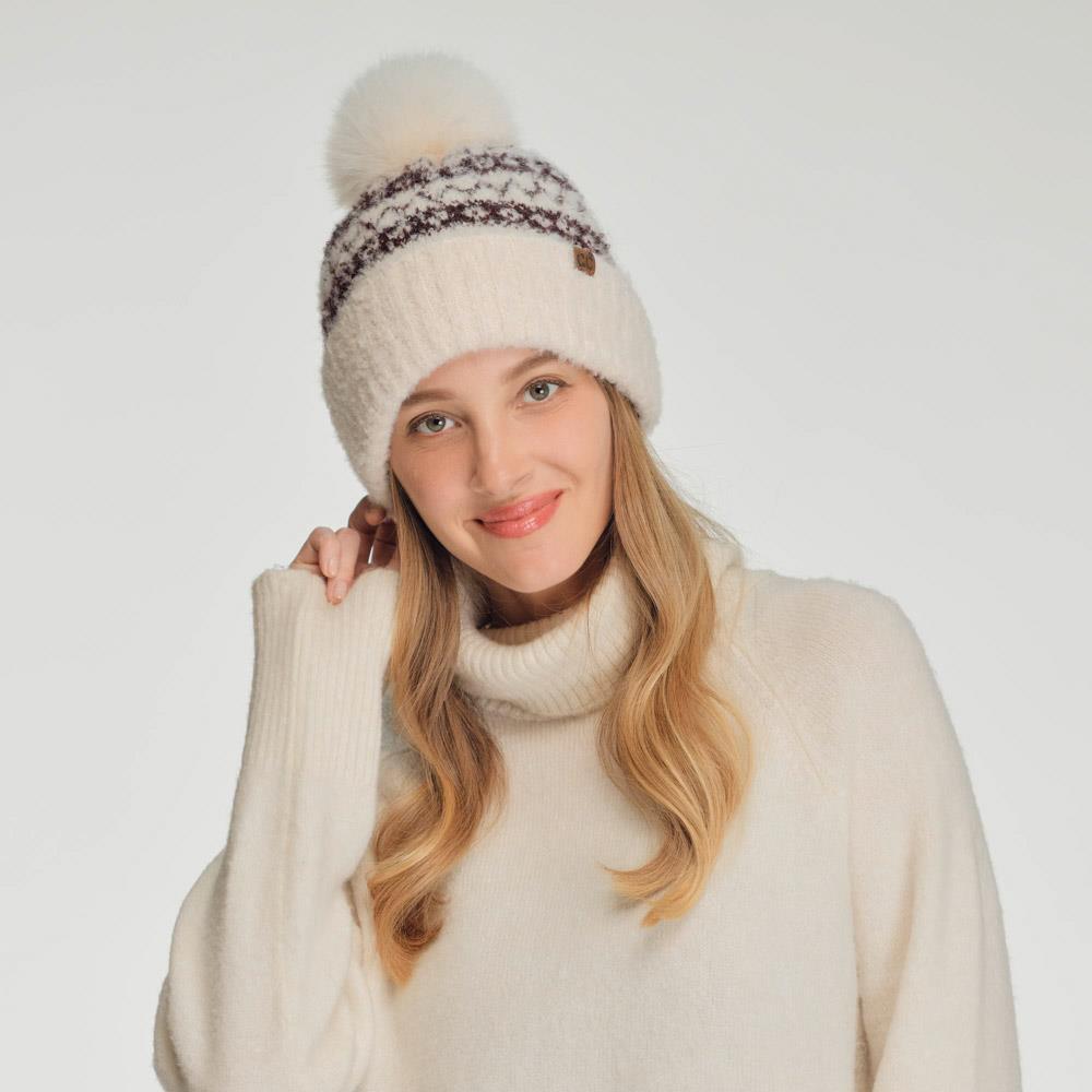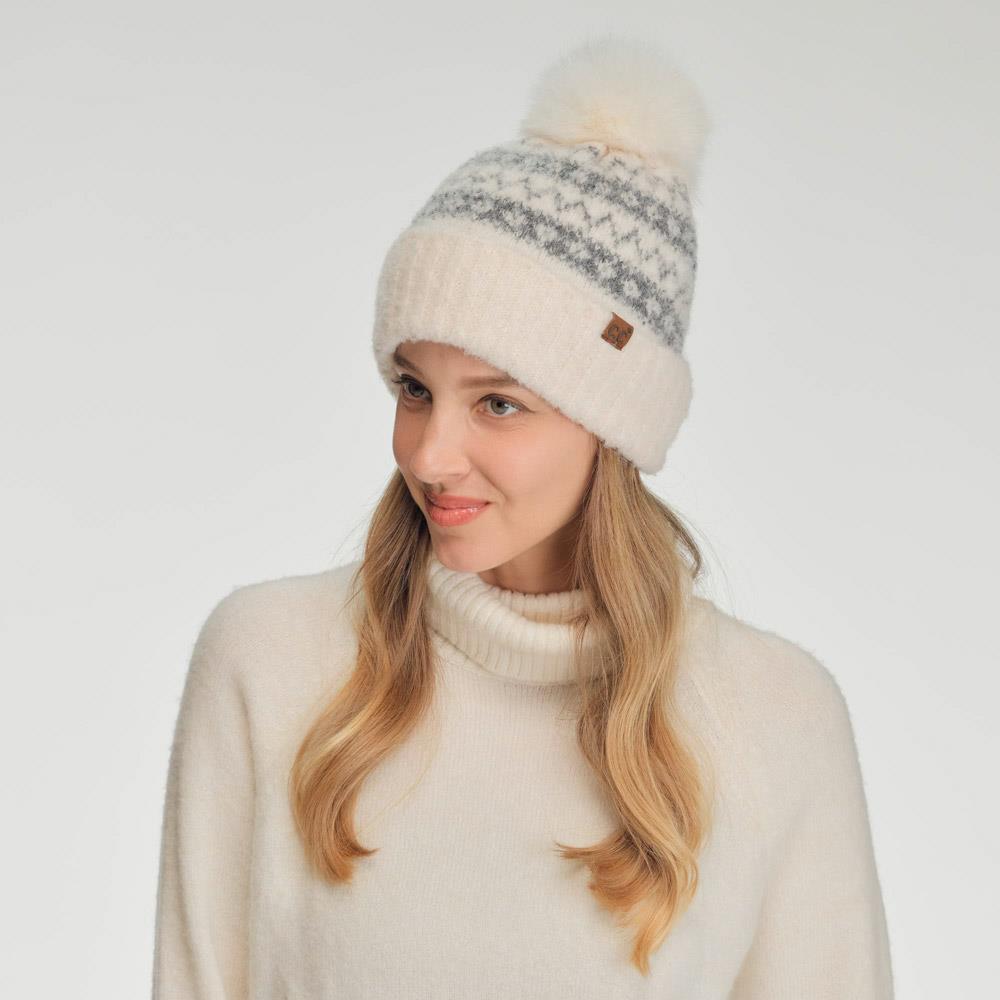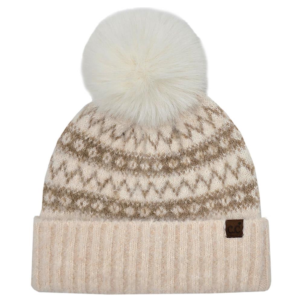 CC FAIR ISLE BEANIE WITH FAUX FUR POM