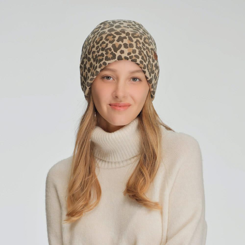 CC LEOPARD PRINT CUFF BEANIE