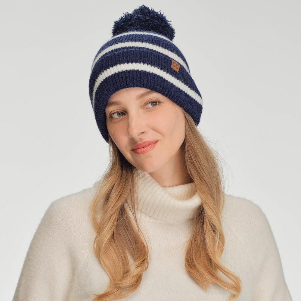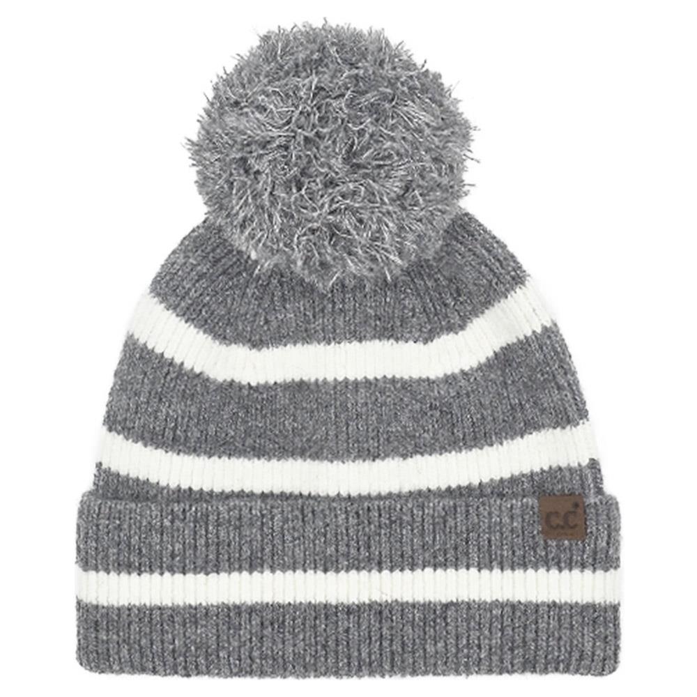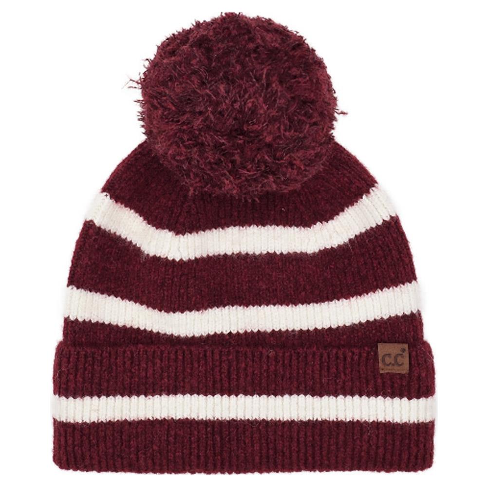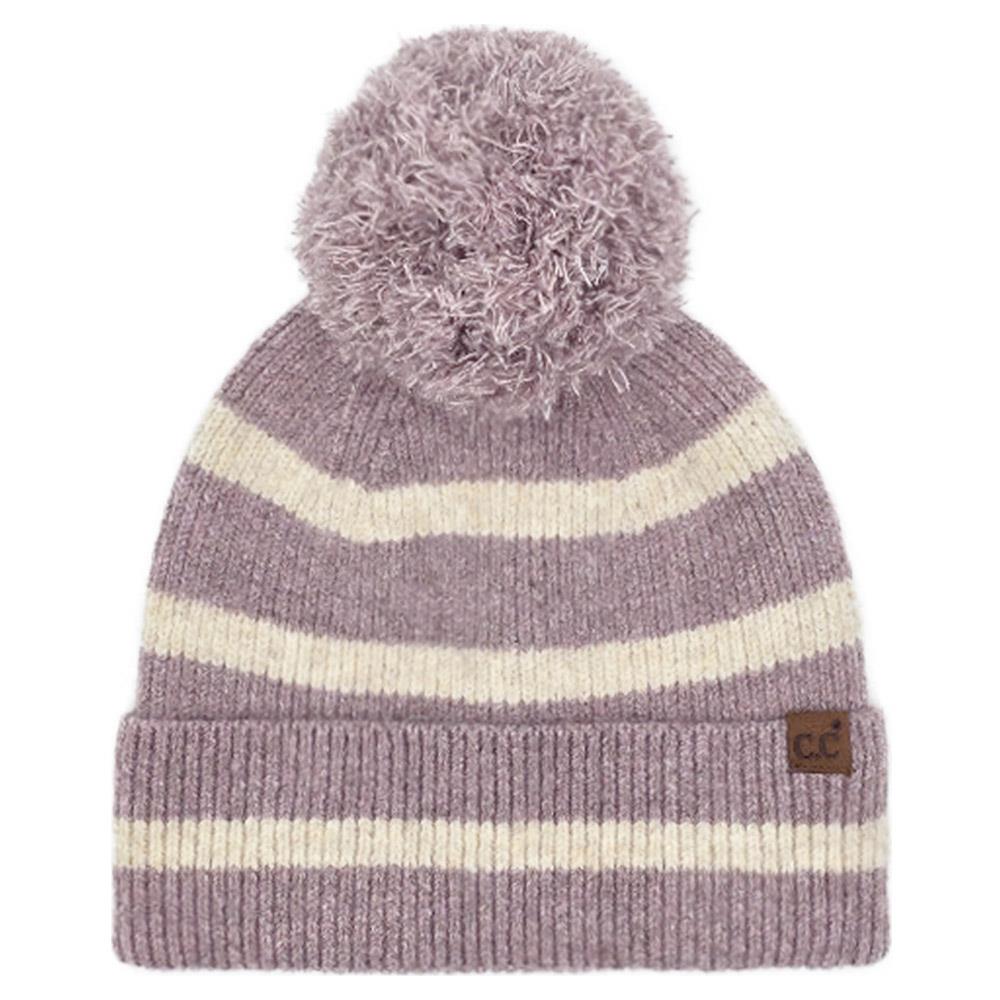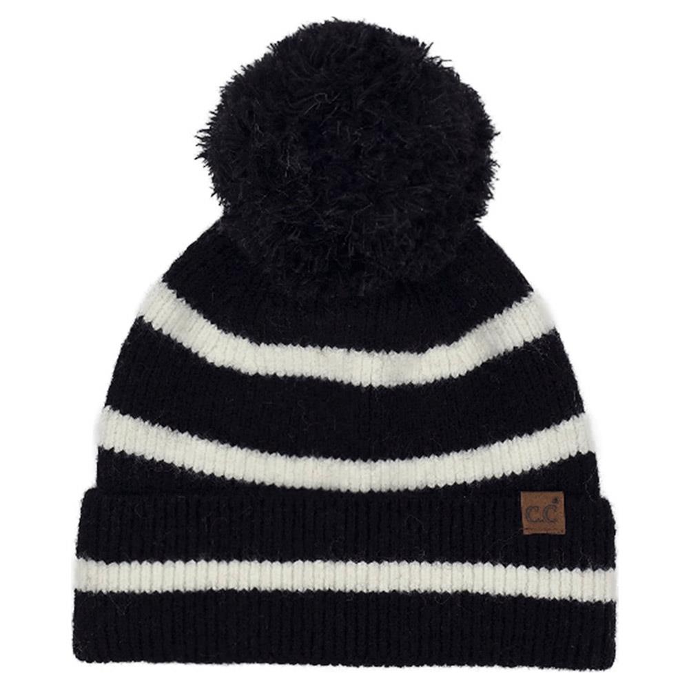 CC STRIPE YARN POM BEANIE