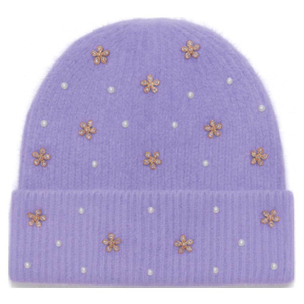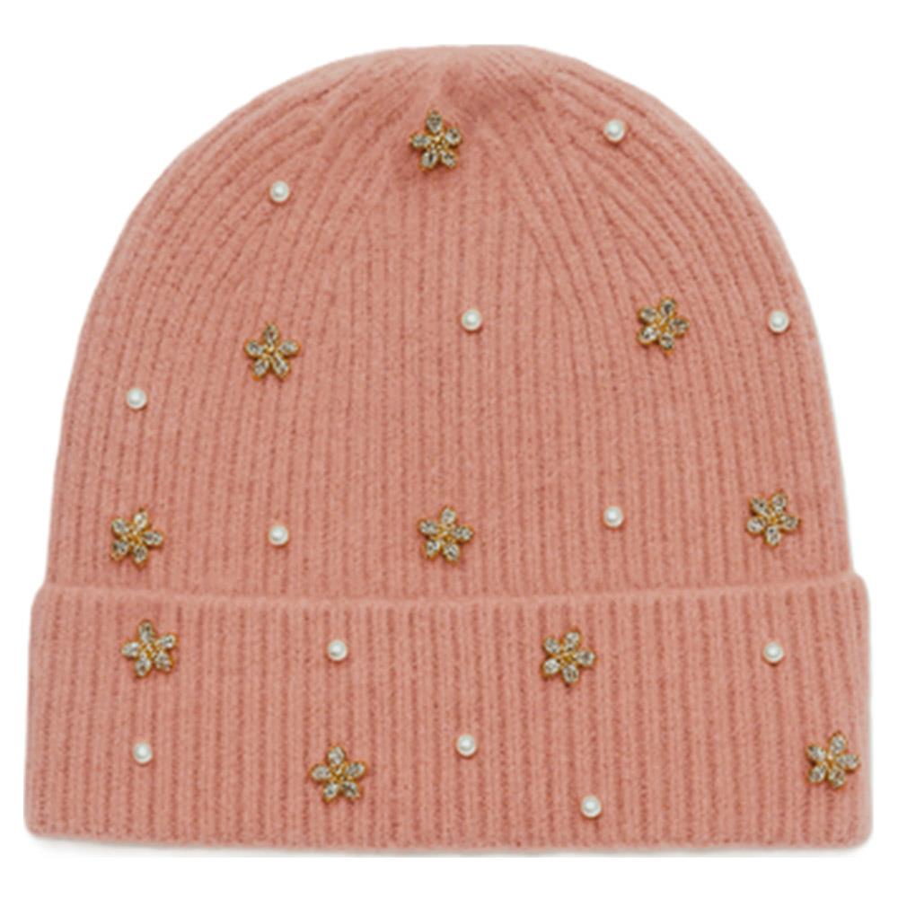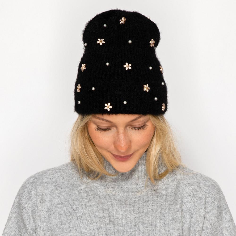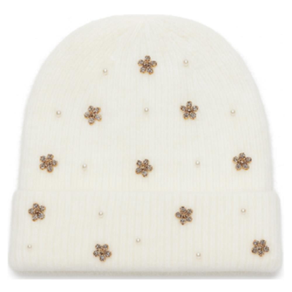 PEARL AND FLOWER ACCENTS KNIT BEANIE HAT