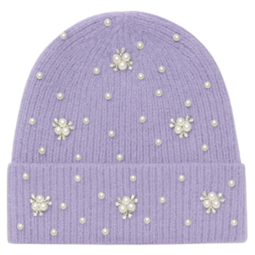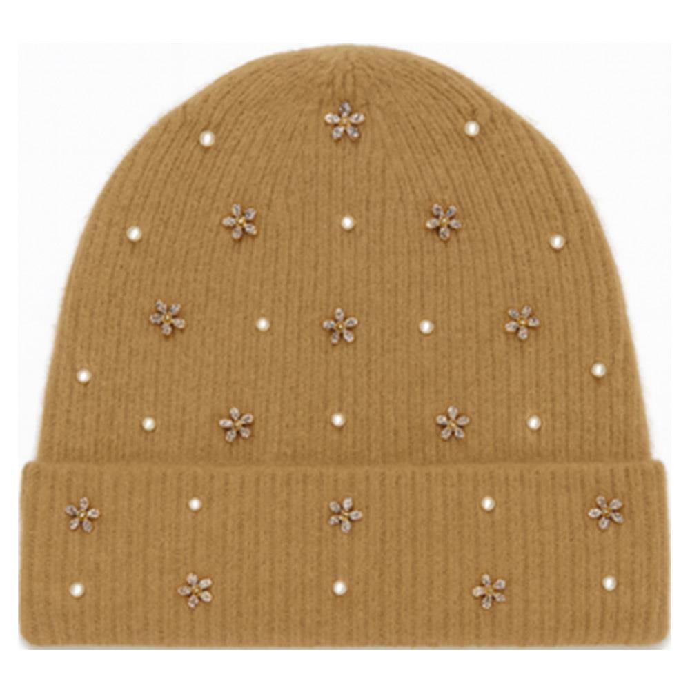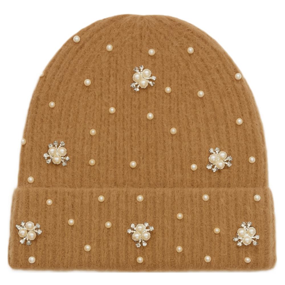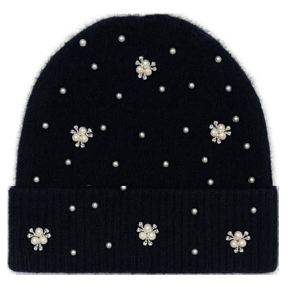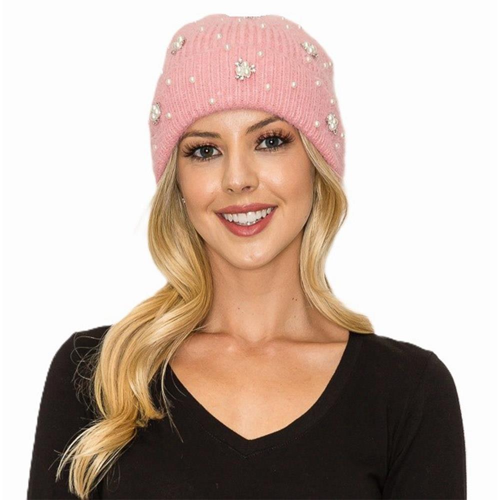 PEARL RHINESTONE EMBELLISHED KNIT BEANIE