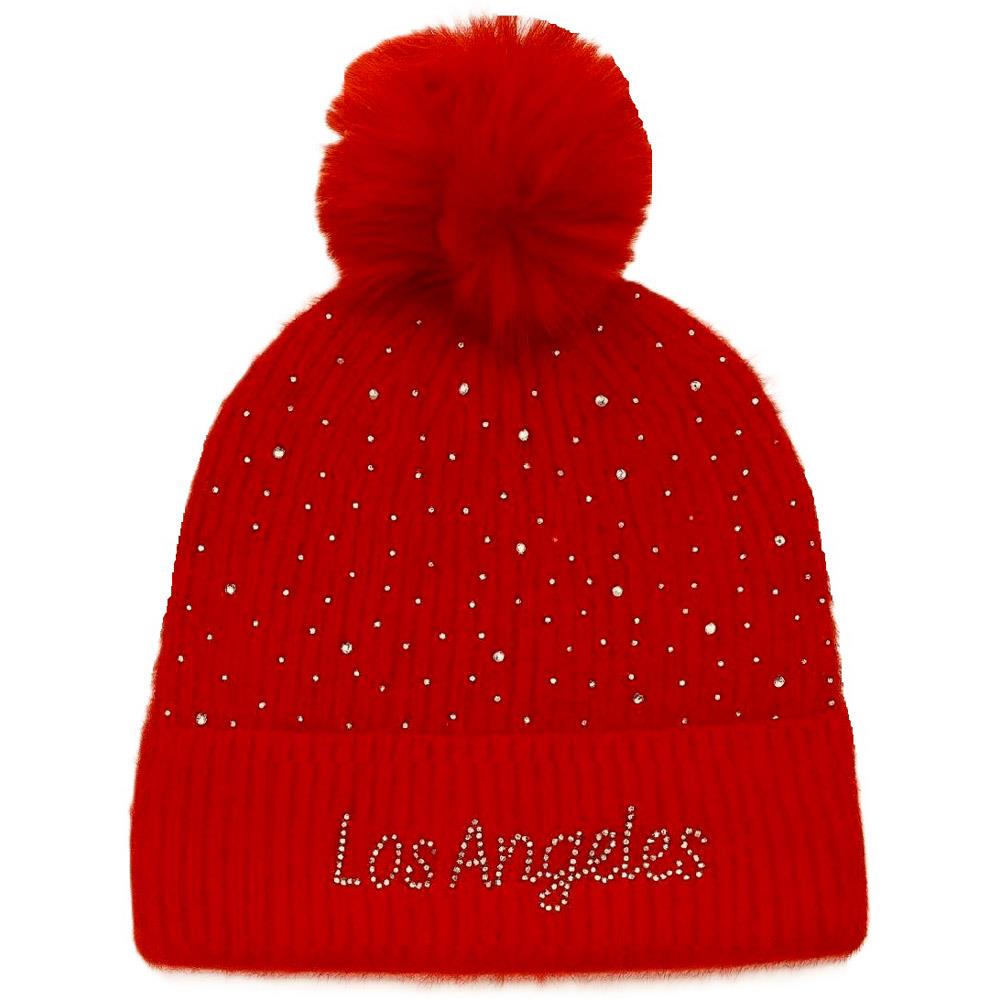 RHINESTONE LOS ANGELES LOGO WITH POMPOM BEANIE