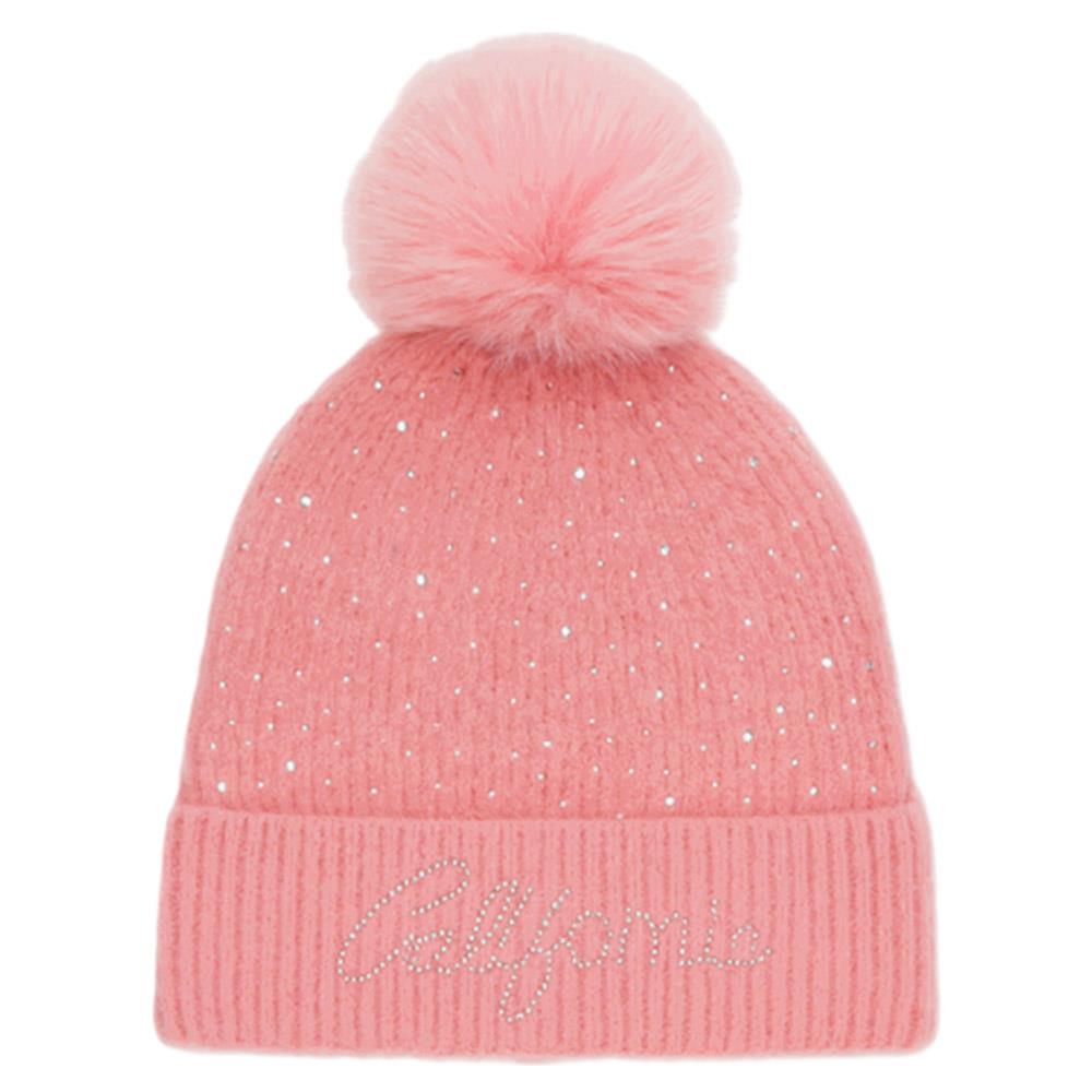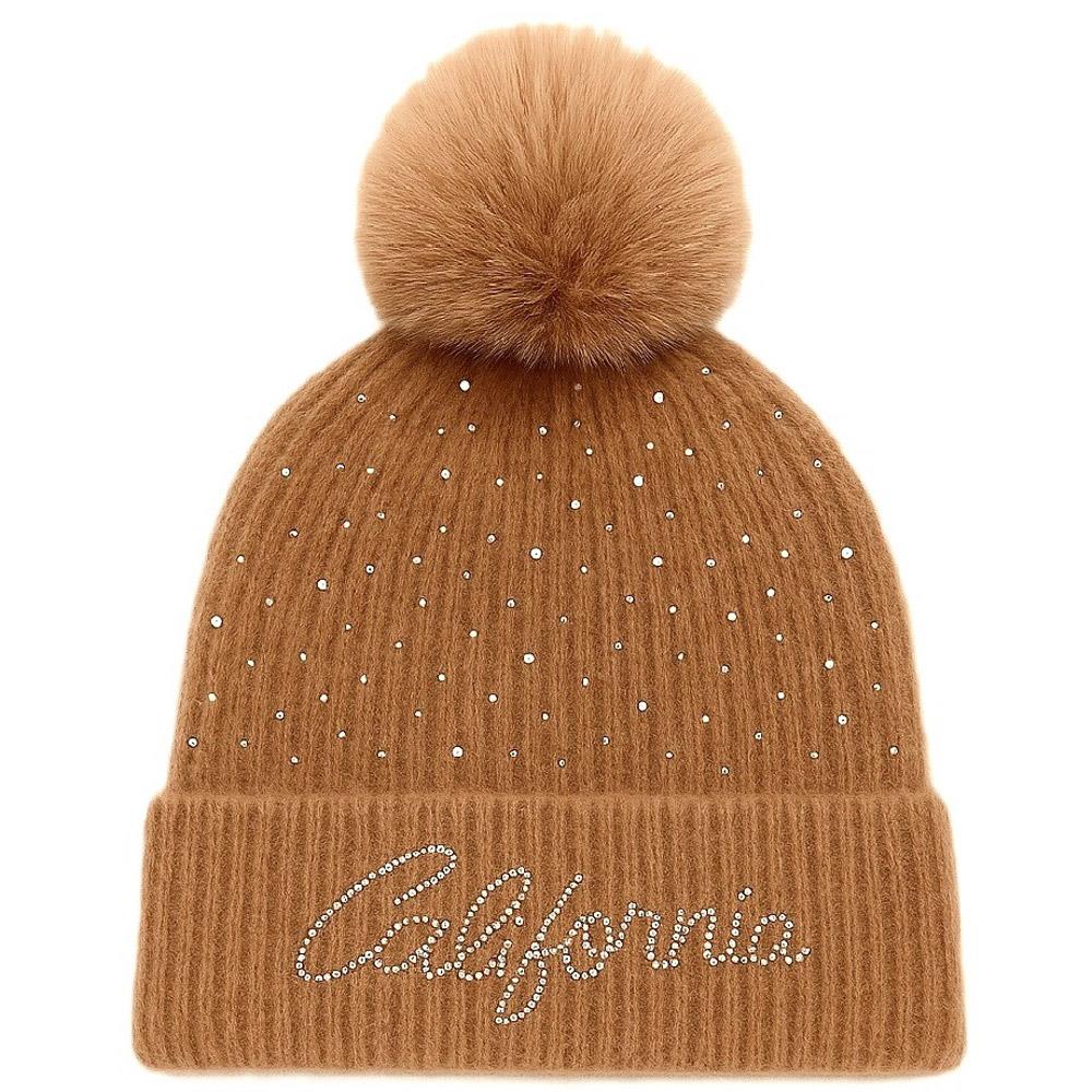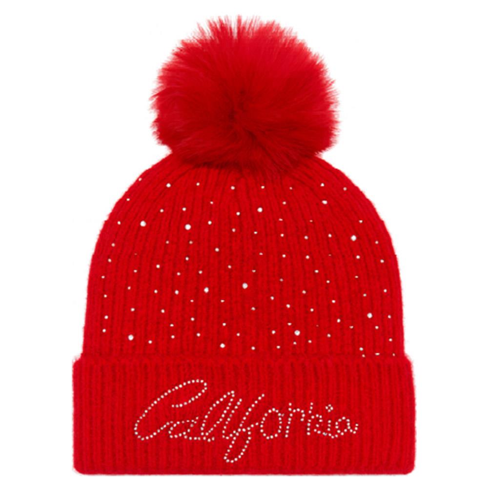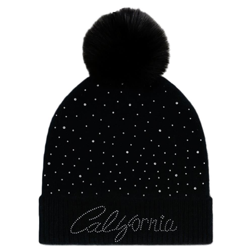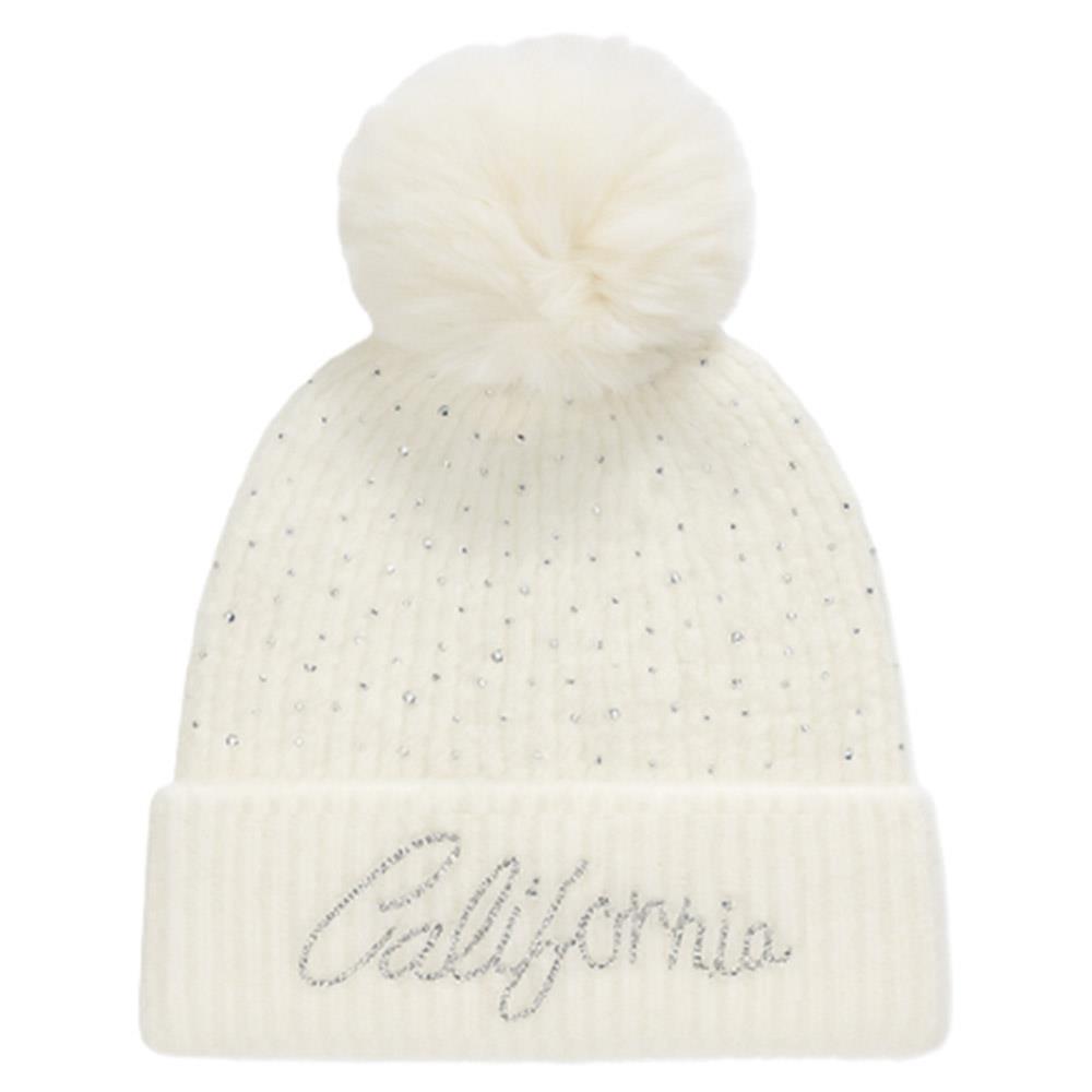 RHINESTONE CALIFORNIA LOGO WITH POMPOM BEANIE