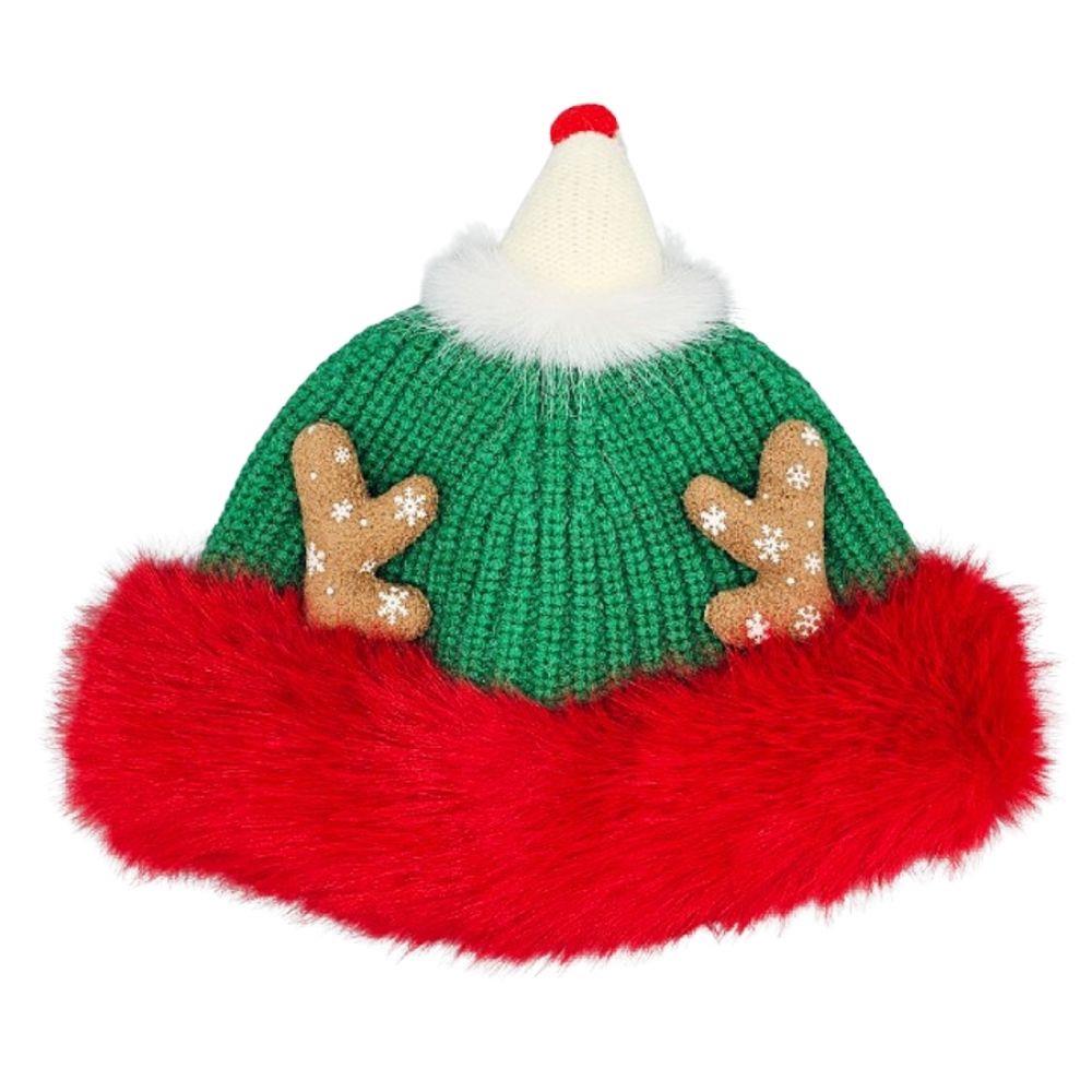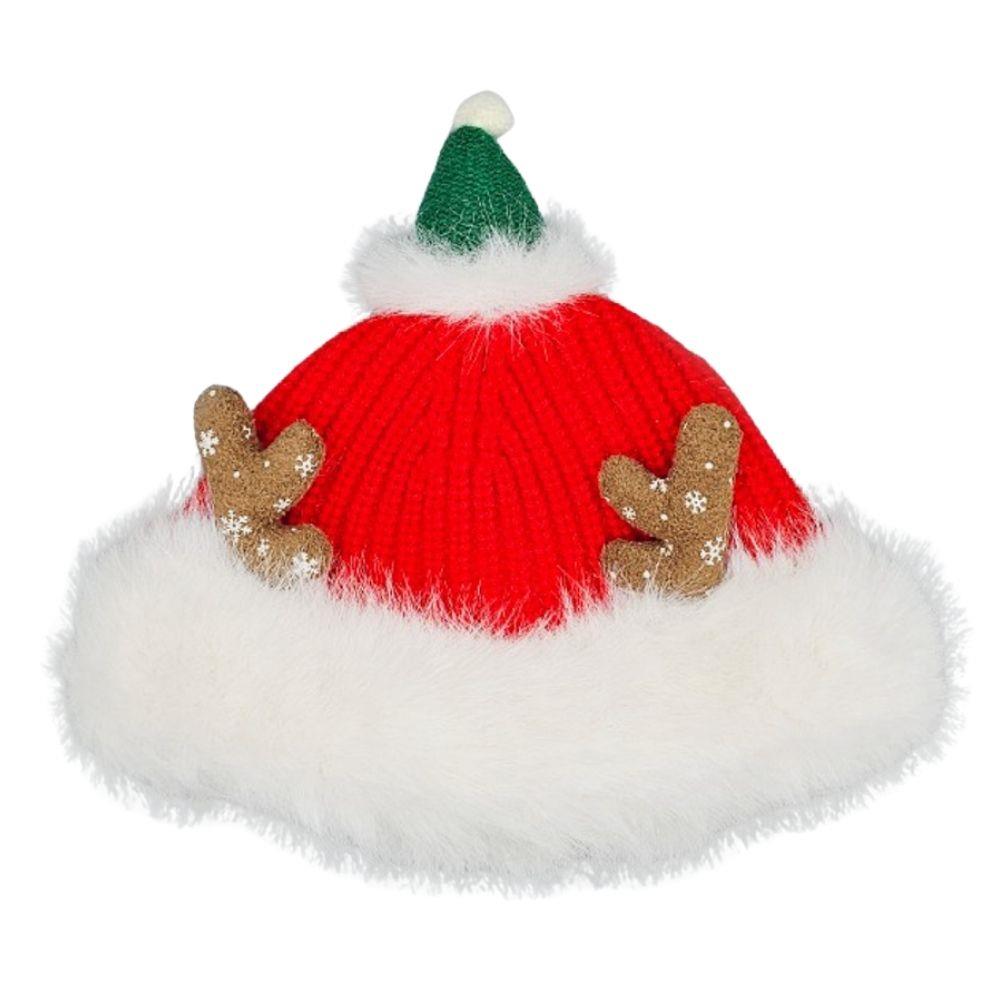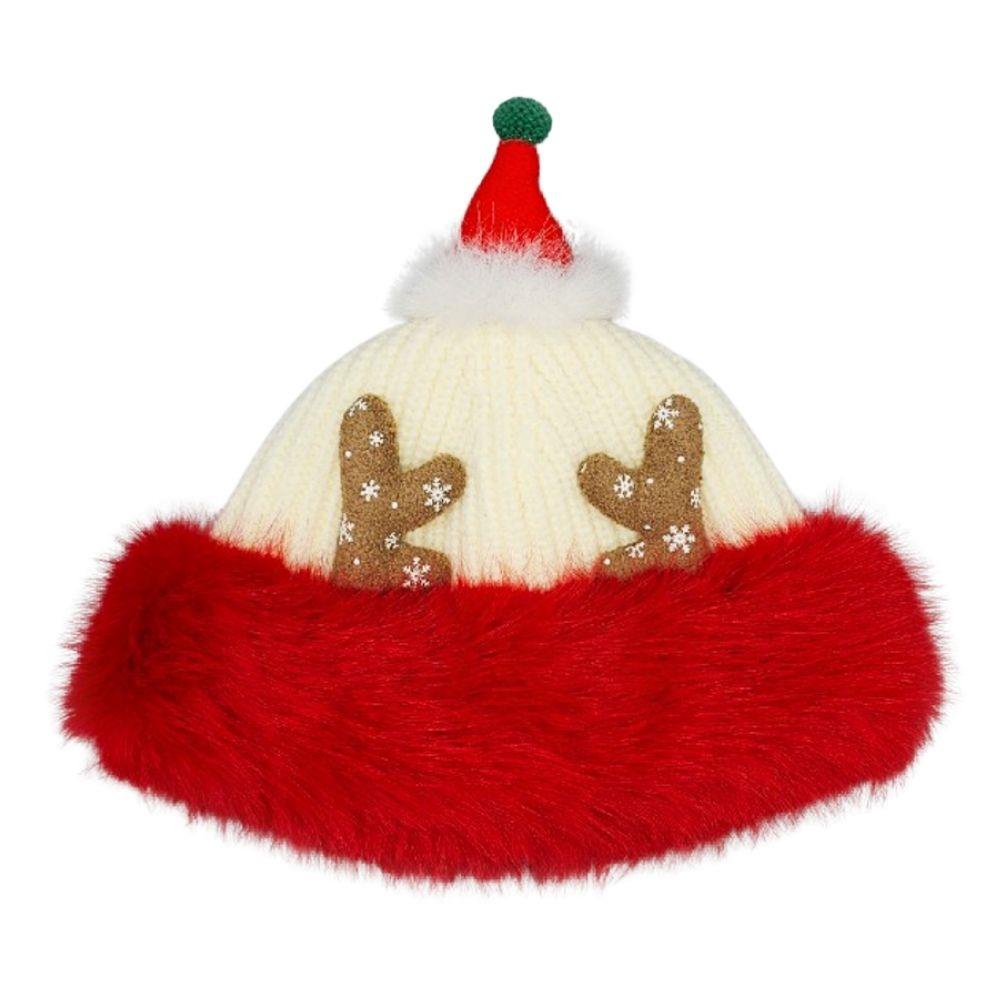 CHRISTMAS KNIT REINDEER ANTLER FUR TRIM WINTER HAT
