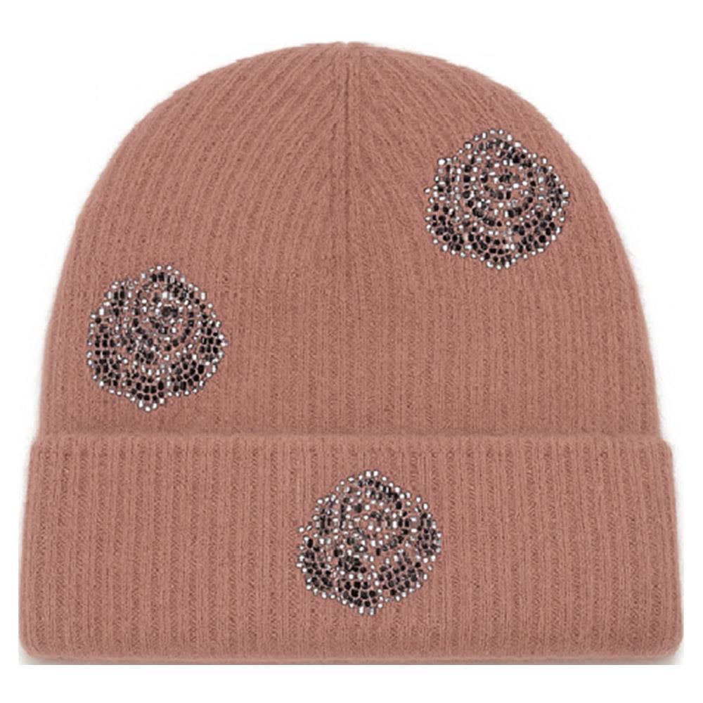 RHINESTONE ROSE PATTERN KNIT BEANIE HAT