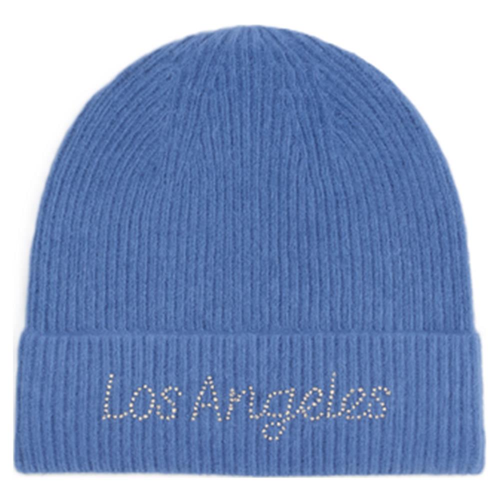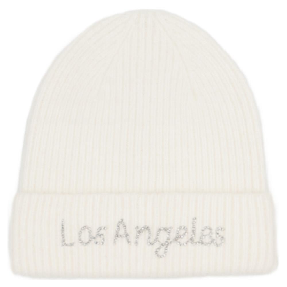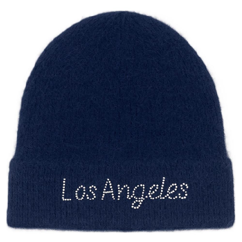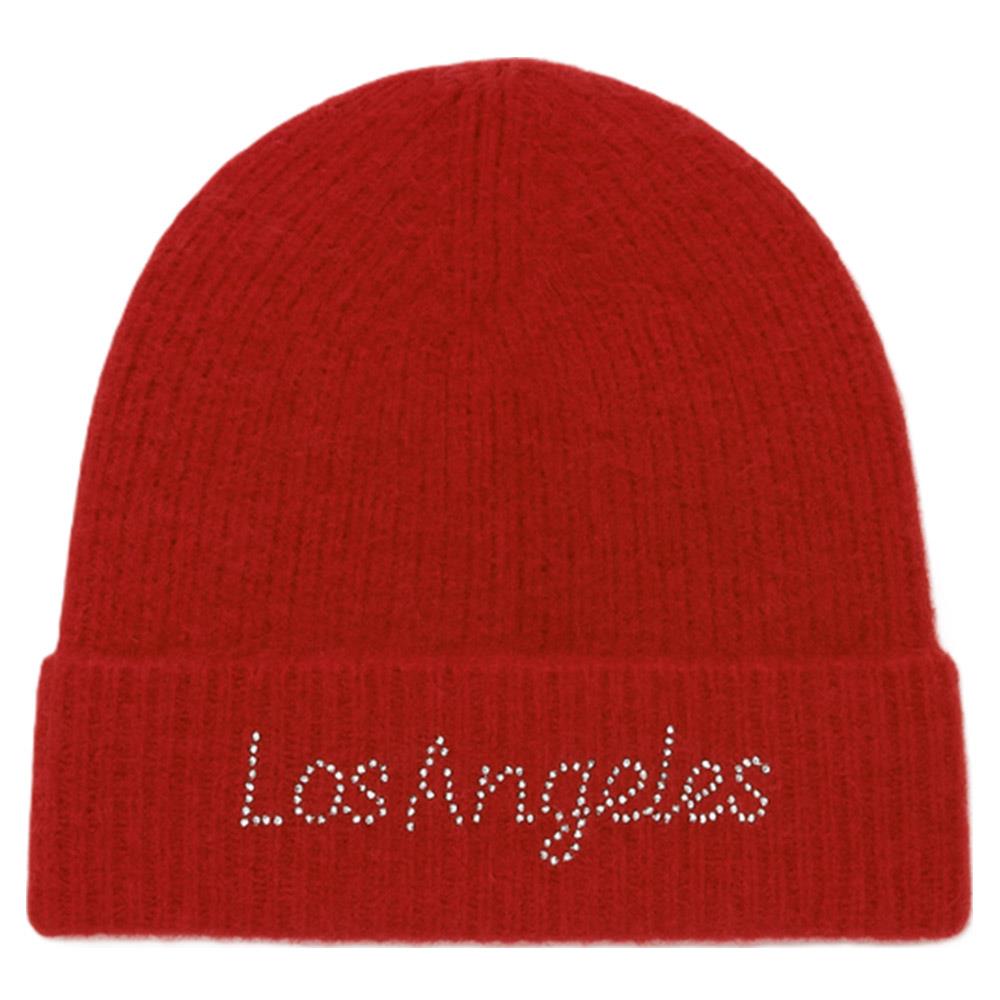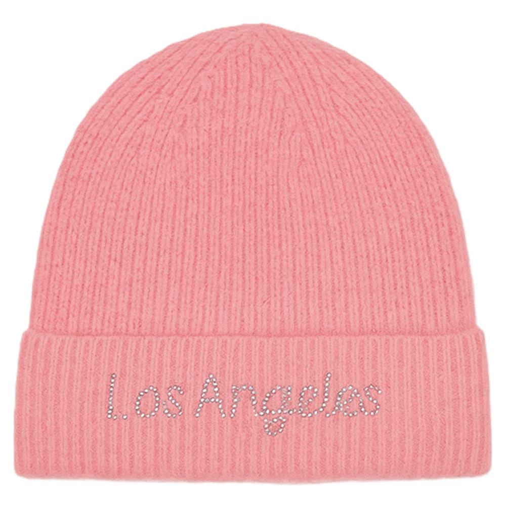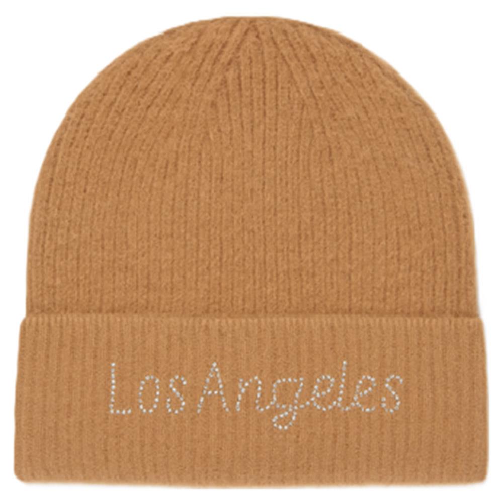 RHINESTONE LOS ANGELES LETTERING KNIT BEANIE HAT