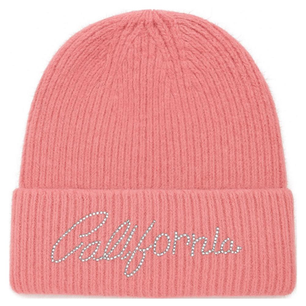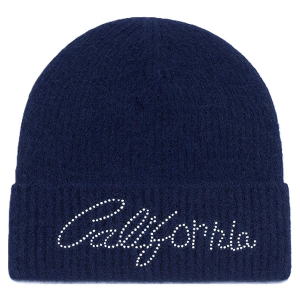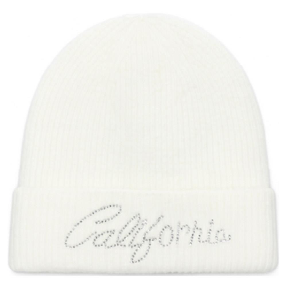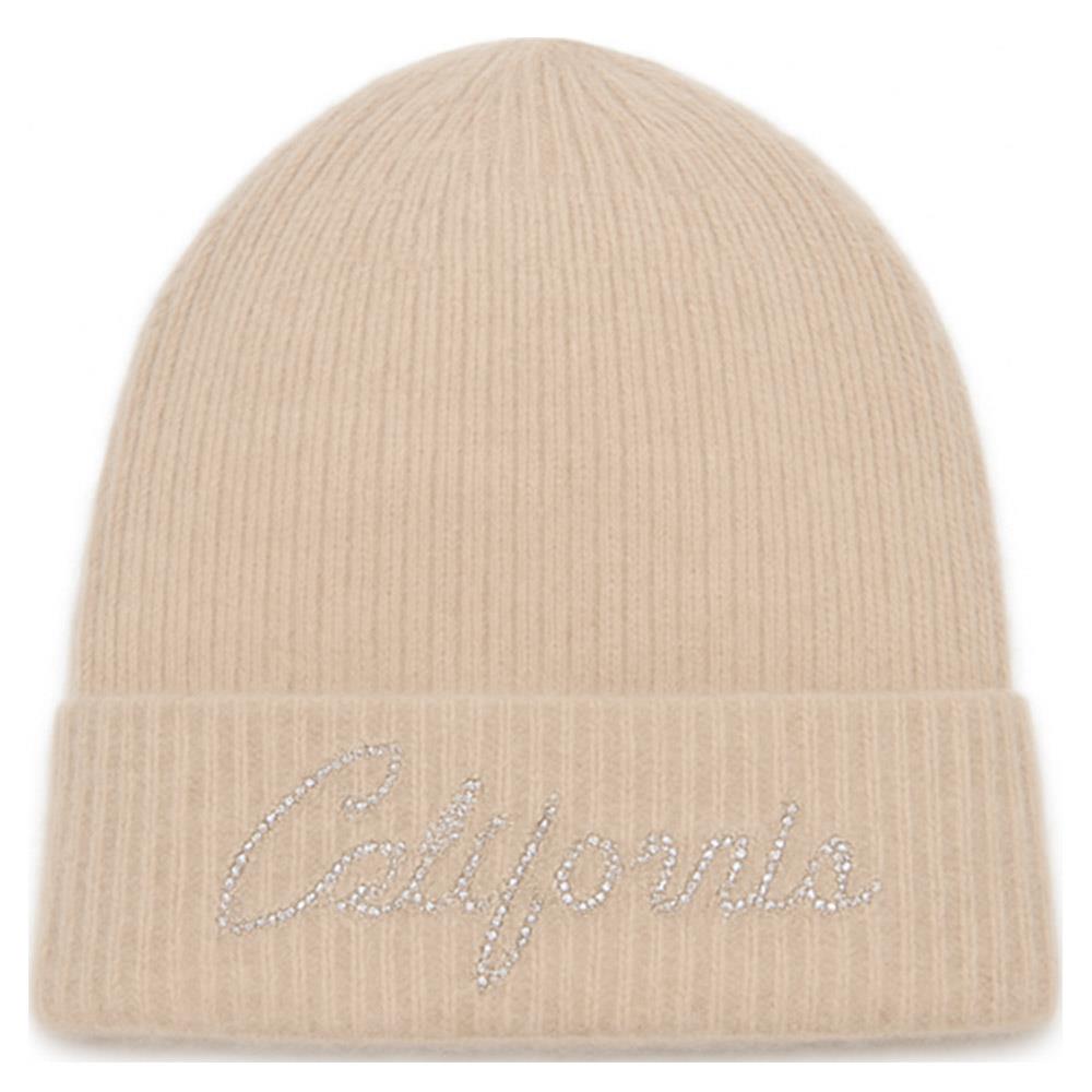 RHINESTONE CALIFORNIA LETTERING KNIT BEANIE HAT