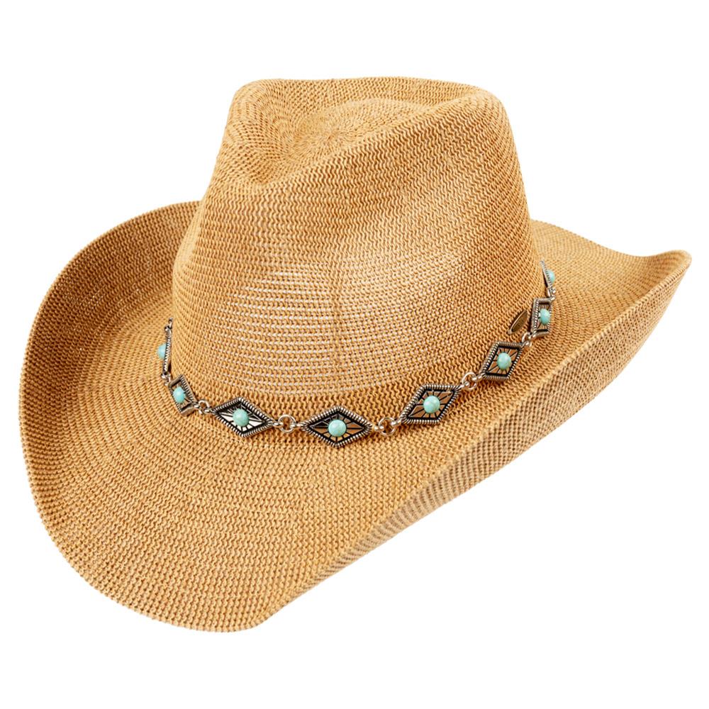 CC PAPER WEAVE COWBOY HAT WITH TURQUOISE