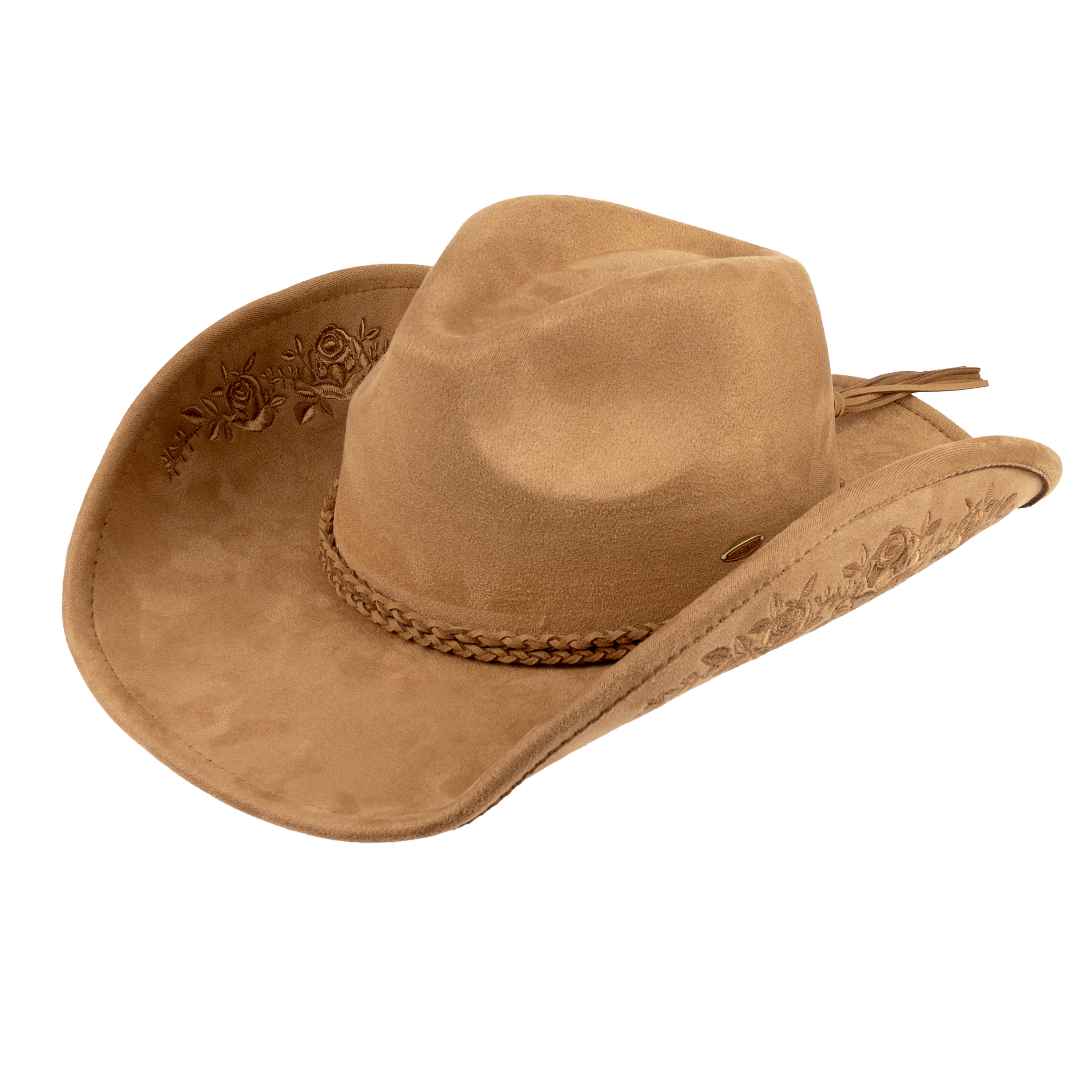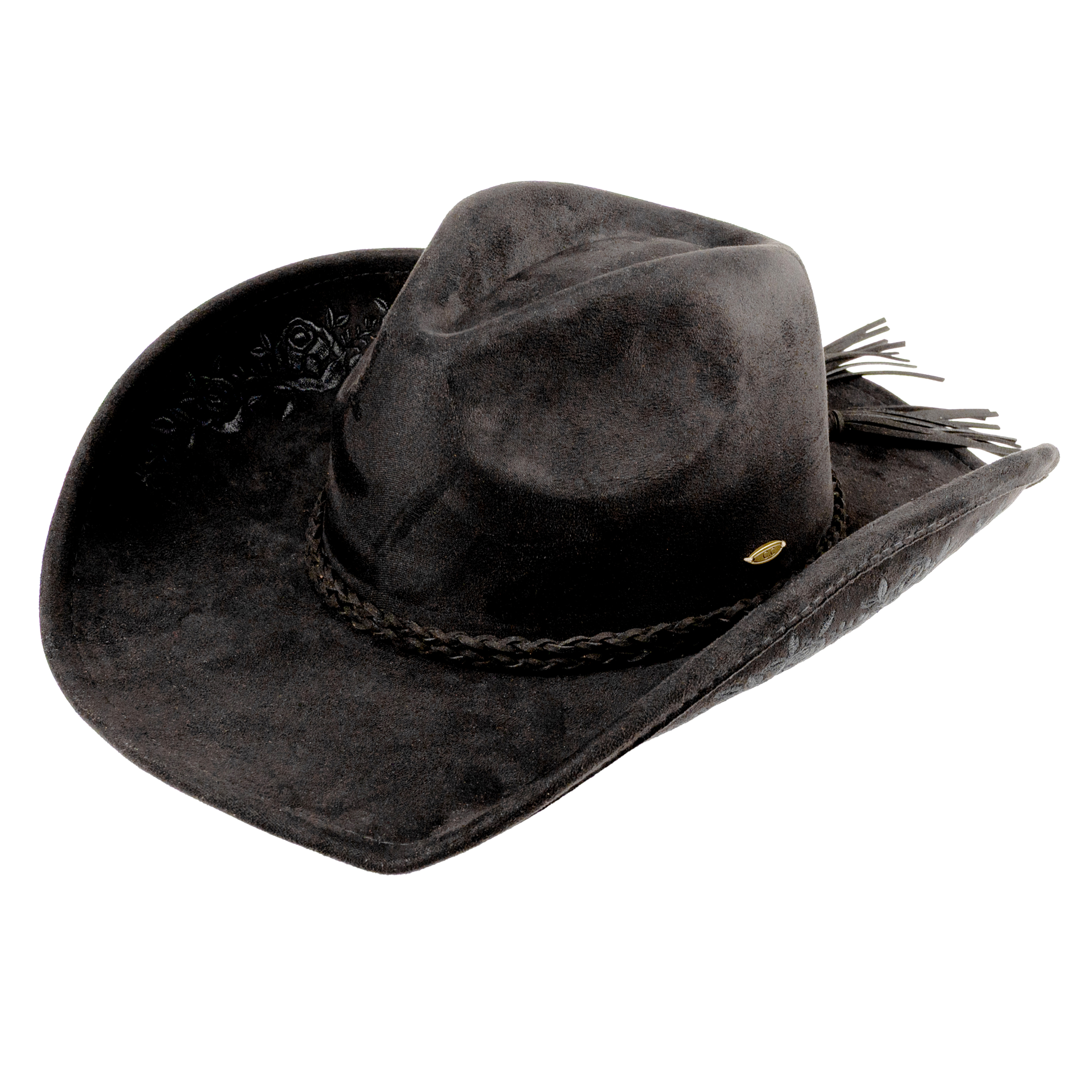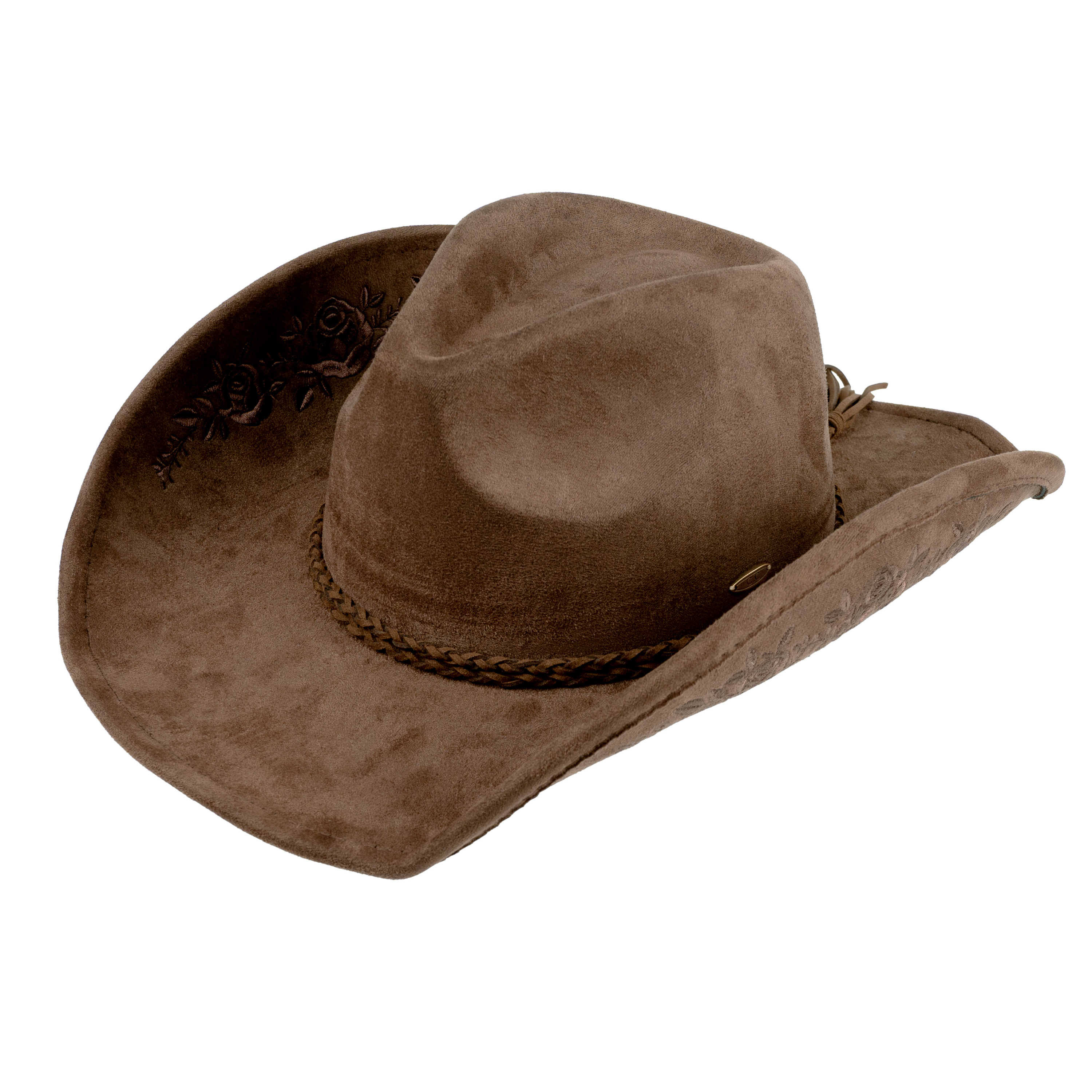 FAUX SUEDE COWBOY HAT WITH FLORAL EMBROIDERY PATTERN
