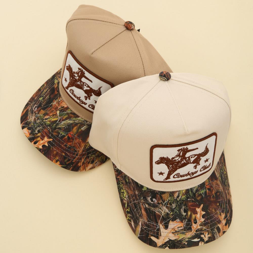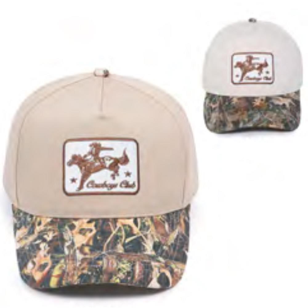 COWBOY CLUB PATCH CAMO PRINT BRIM 5 PANEL BASEBALL CAP