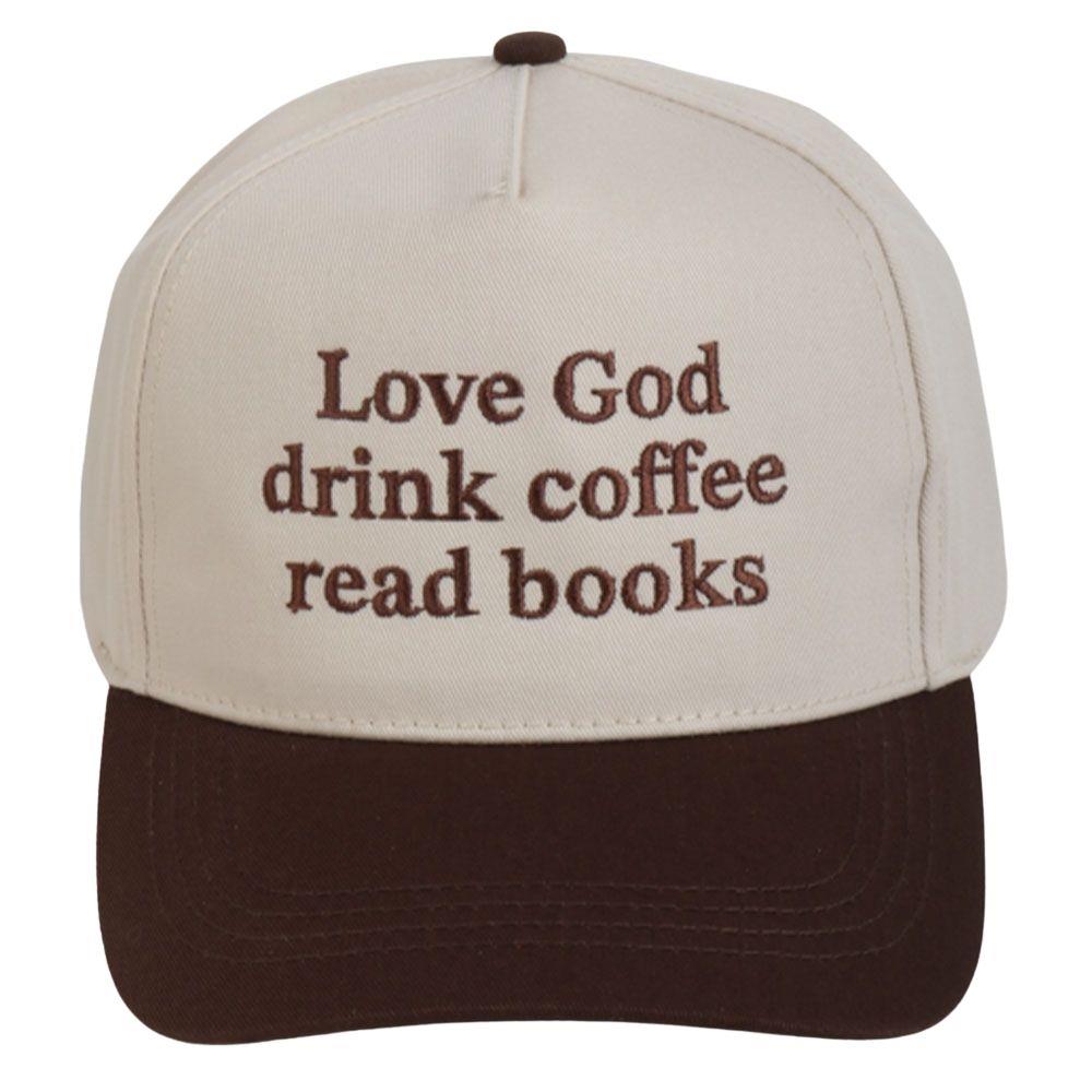 LOVE GOD DRINK COFFEE READ BOOKS EMBROIDERED BASEBALL CAP