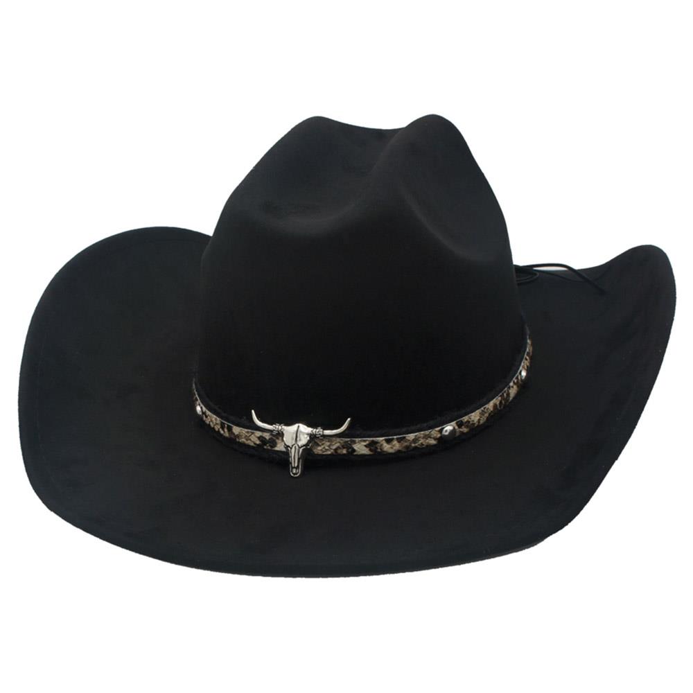 LONGHORN/SNAKE/STRAW BANDED MICROSUEDE COWBOY HAT