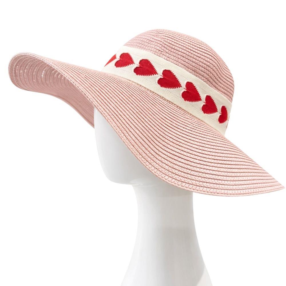 STRAW HEART BAND SUN FLOPPY HAT