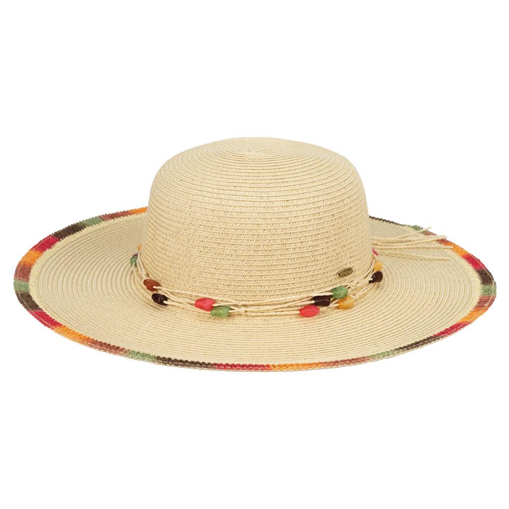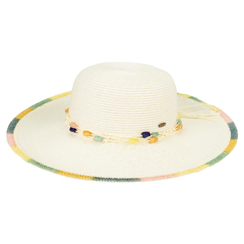 CC MULTI COLOR BRIM SUN HAT AND MULTI COLORED STONE WITH STRAW BAND