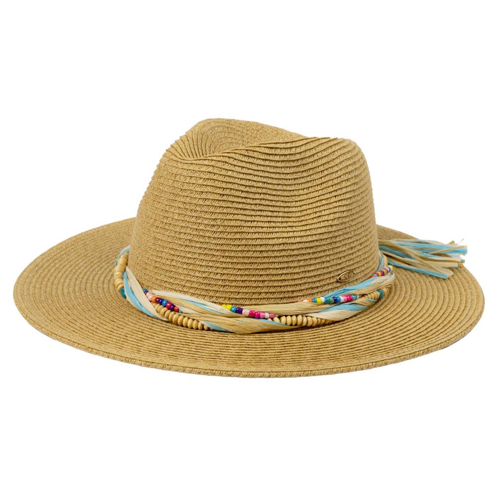 CC PANAMA HAT WITH COLORED STRAW BAND AND MULTI COLORED BEAD