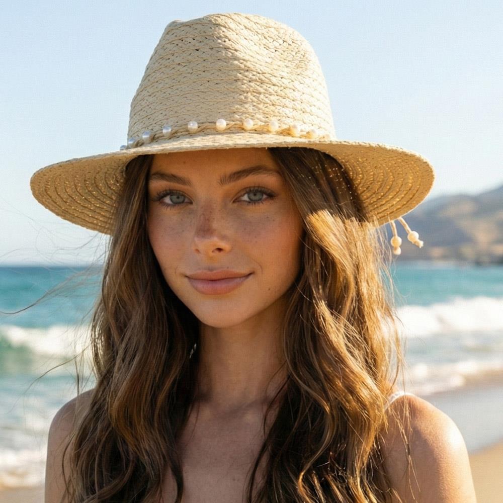 CLASSIC STRAW PANAMA HAT W/ SHELL TRIM