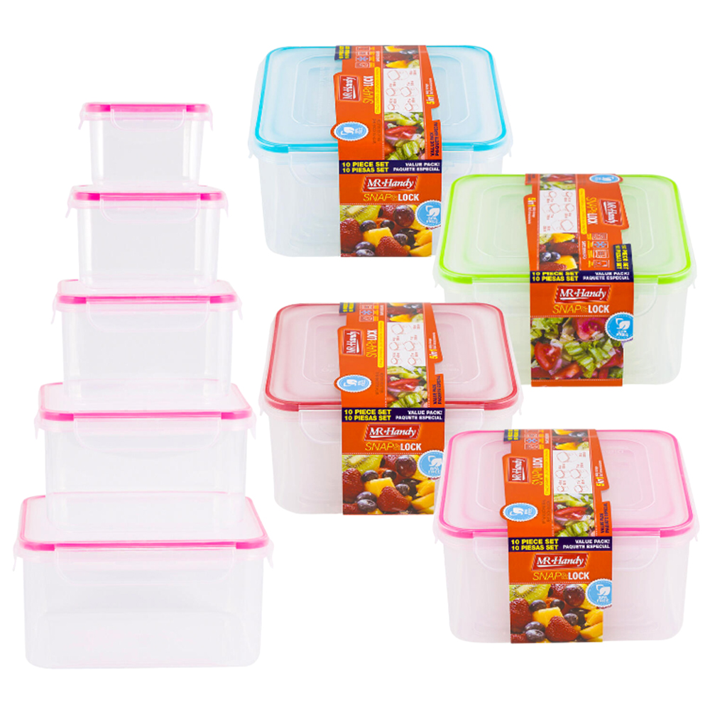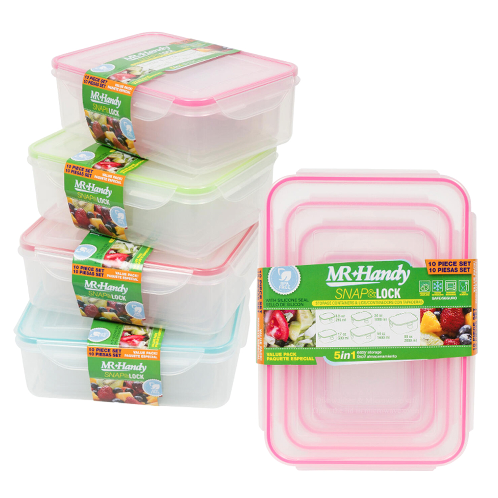 MR HANDY SNAP AND LOCK FOOD SQUARED CONTAINER 10 PIECE SET