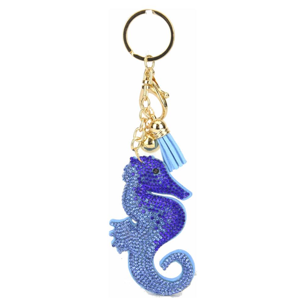 RHINESTONE SEAHORSE CHARM TASSEL ORNAMENT BAG CHARM KEYCHAIN