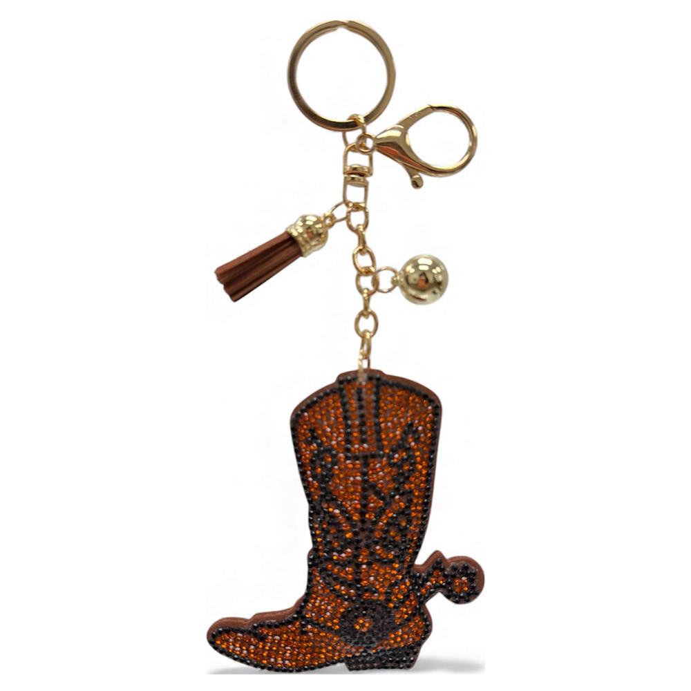 RHINESTONE COWBOY BOOT KEYCHAIN WITH TASSEL