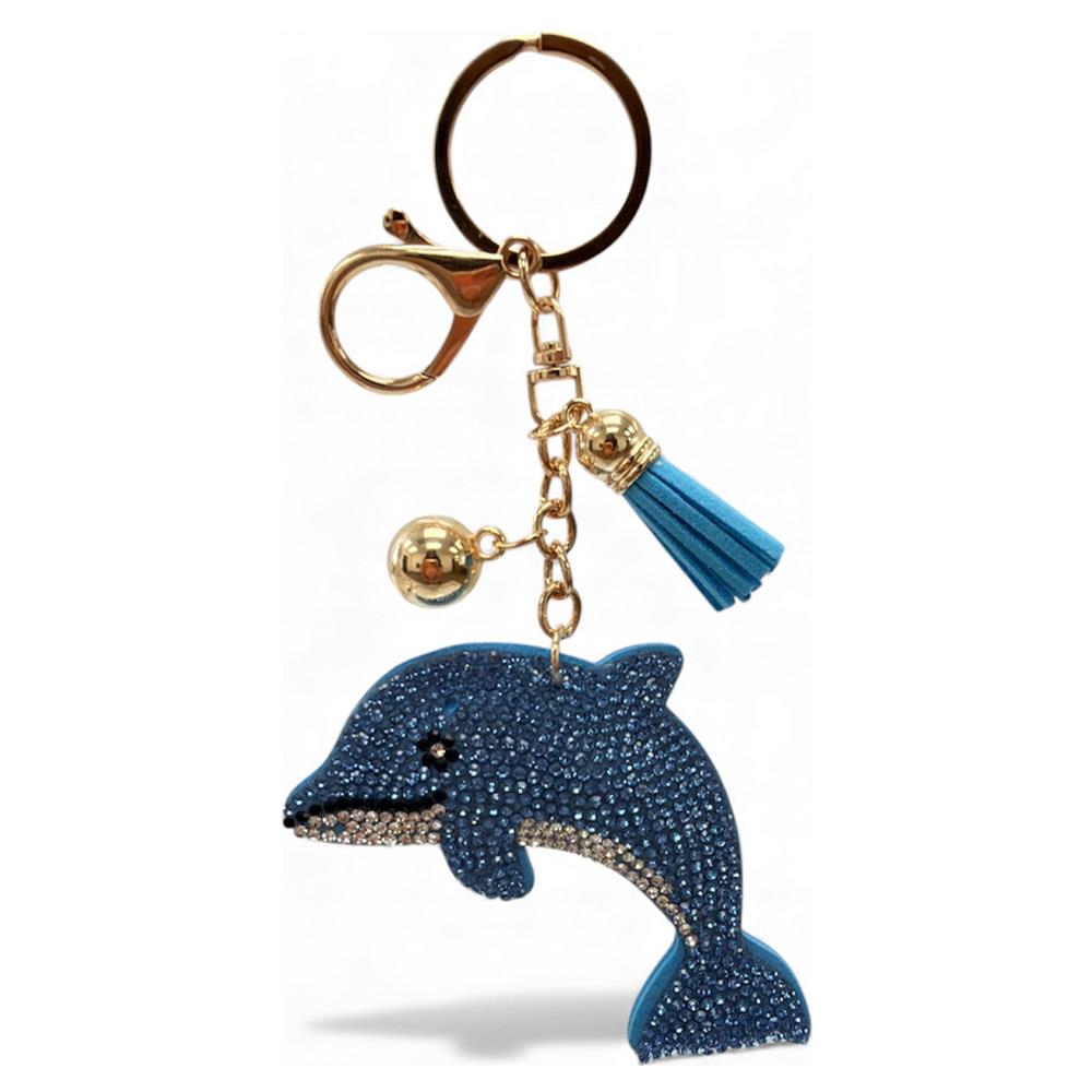 RHINESTONE DOLPHIN KEYCHAIN WITH TASSEL