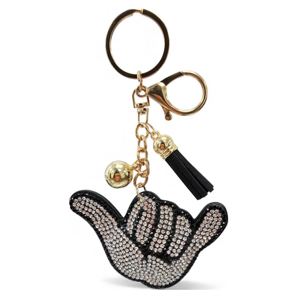 RHINESTONE SHAKA HAND KEYCHAIN WITH TASSEL