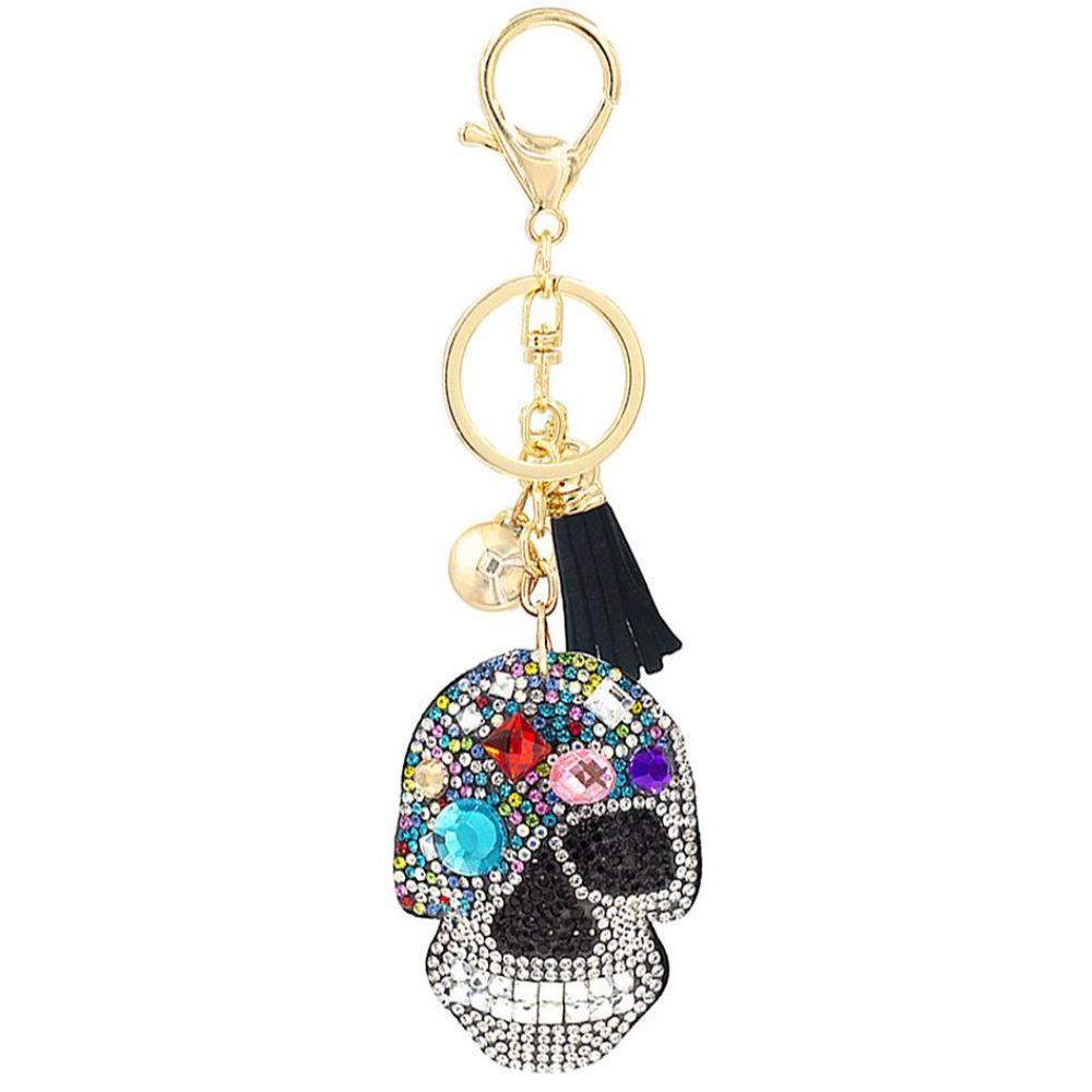 HALLOWEEN RHINESTONE SKULL KEYCHAIN WITH TASSEL