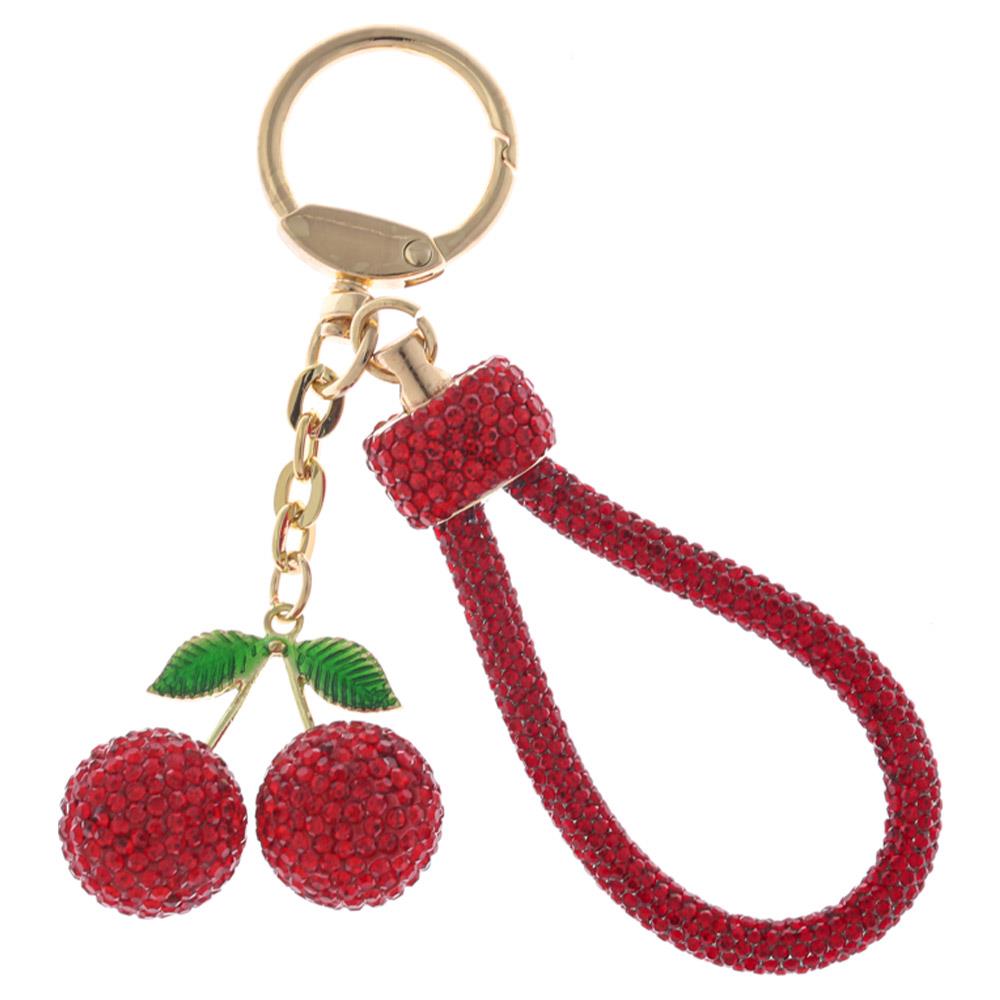 RHINESTONE DOUBLE CHERRY CHARM BAG CHARM KEYCHAIN