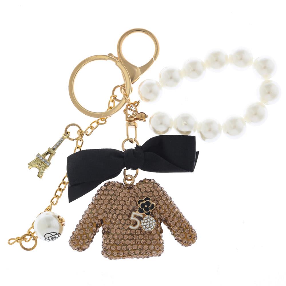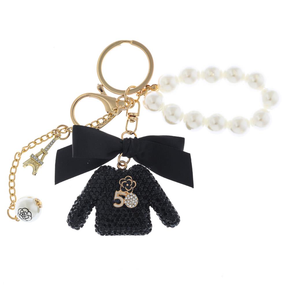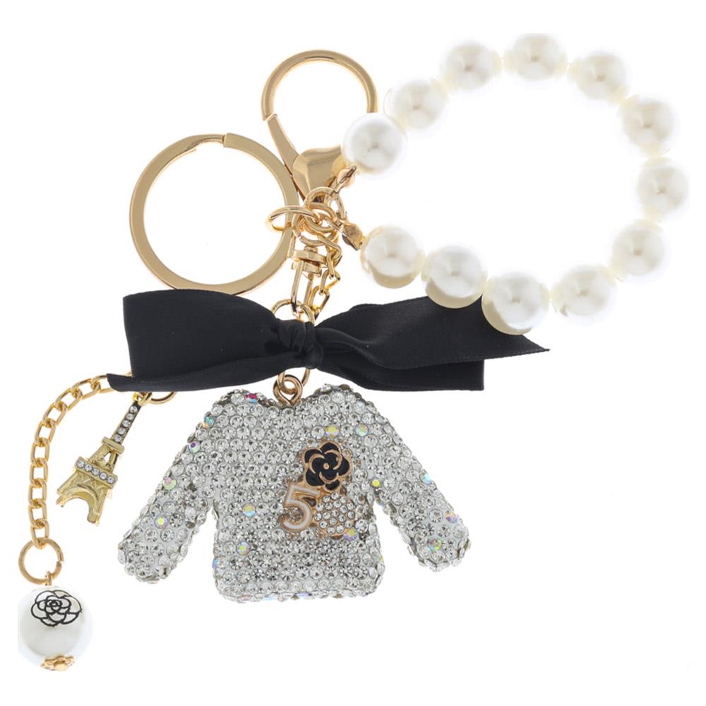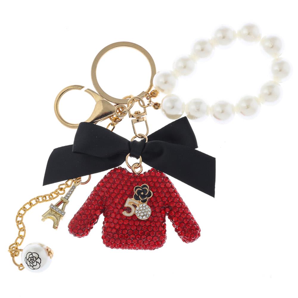 RHINESTONE RIBBON ACCENT SWEATER CHARM BAG CHARM KEYCHAIN