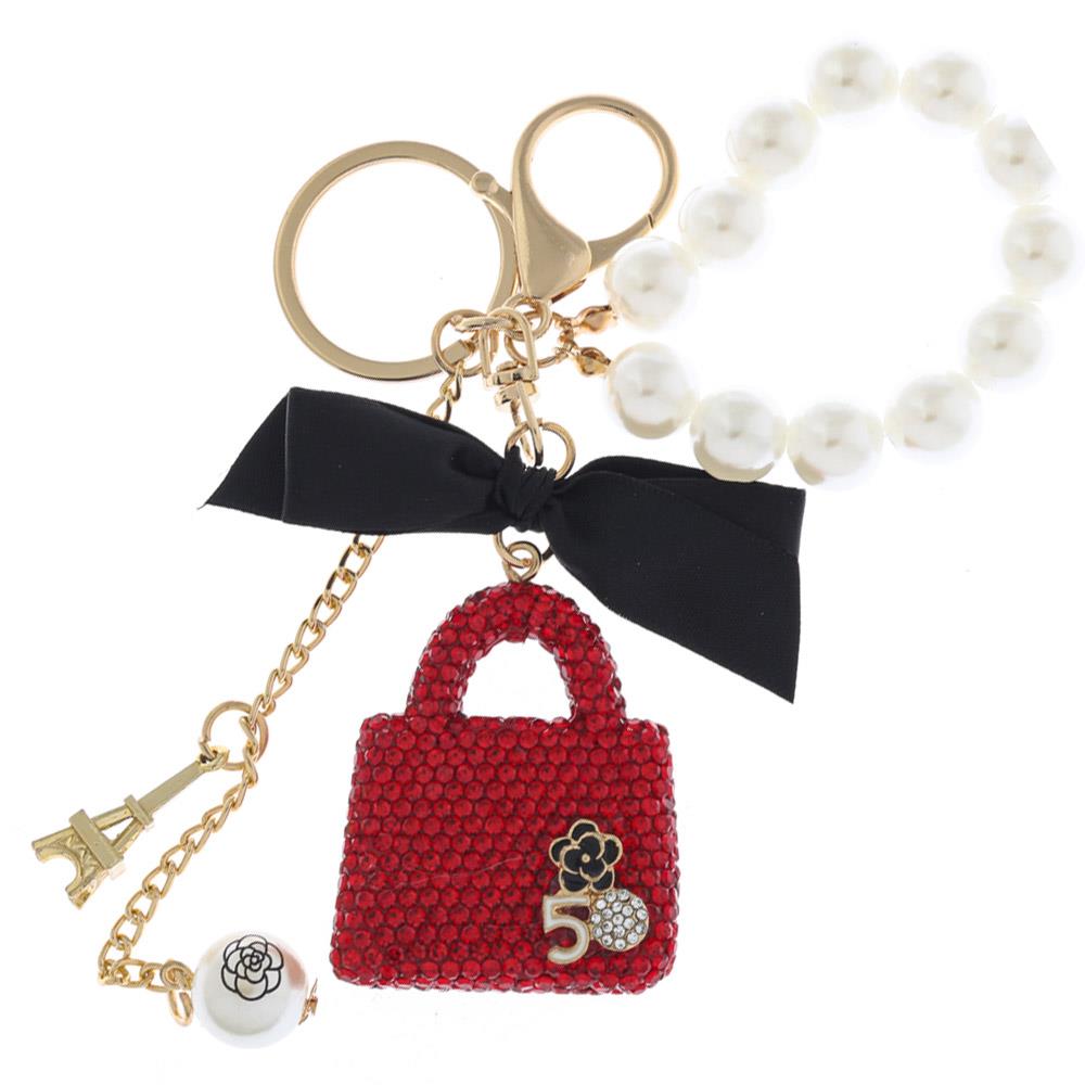 PEARL HANDLE MINI BAG CHARM KEYCHAIN