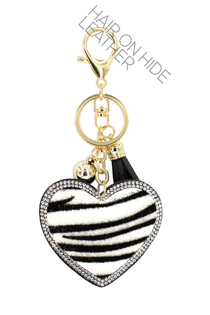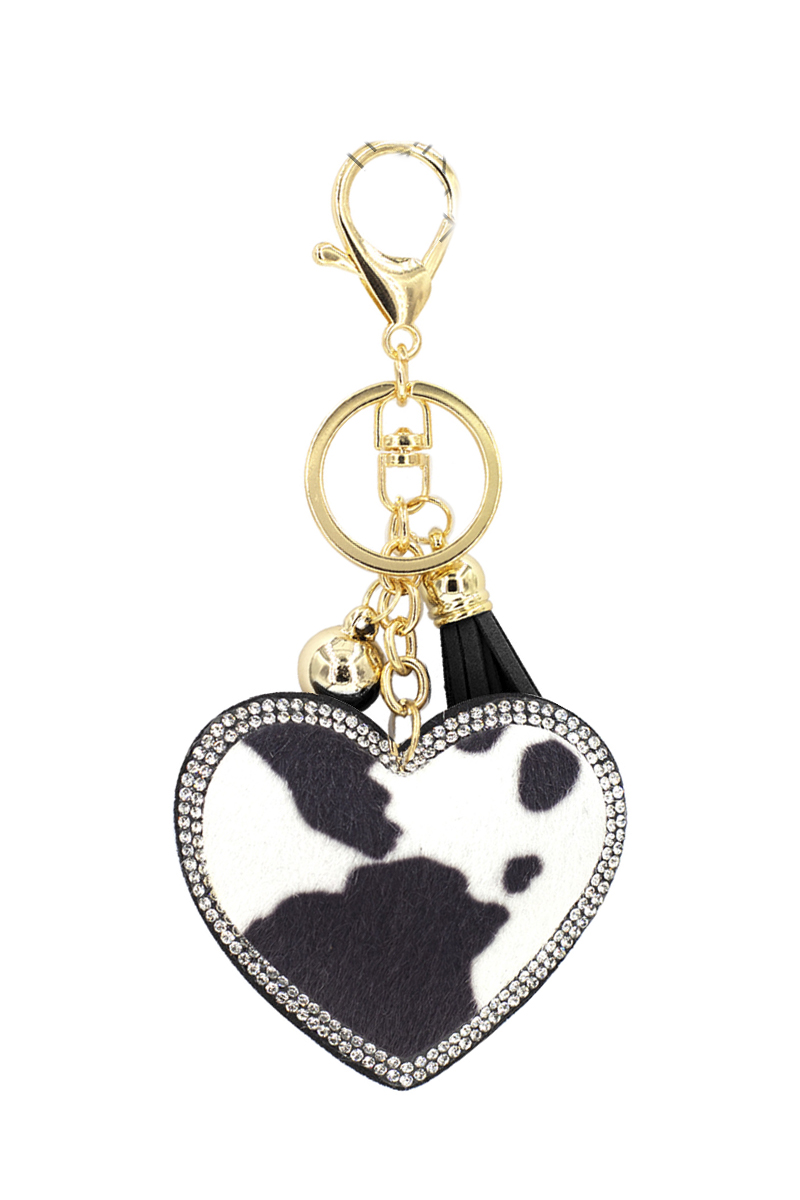 RHINESTONE HEART PAW KEYCHAIN WITH TASSEL