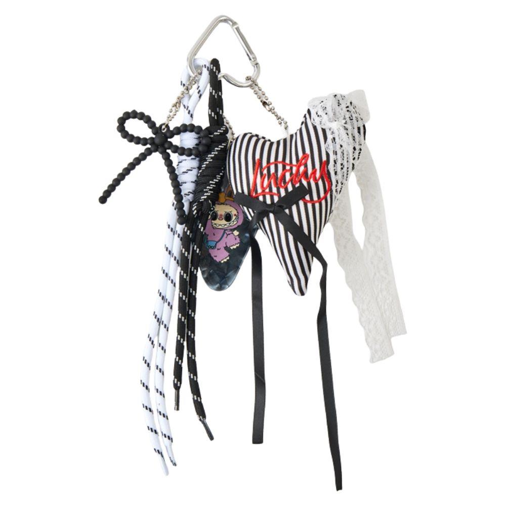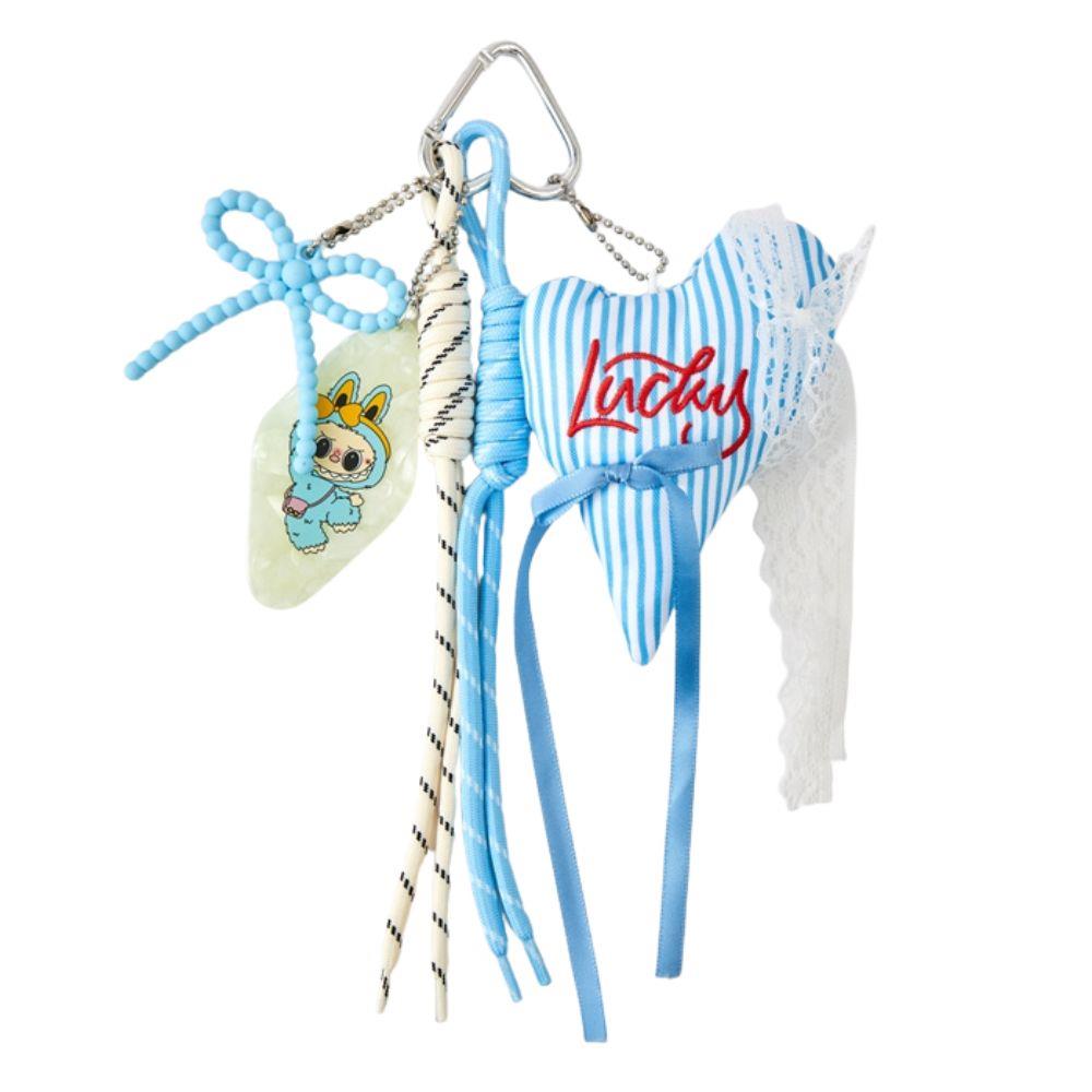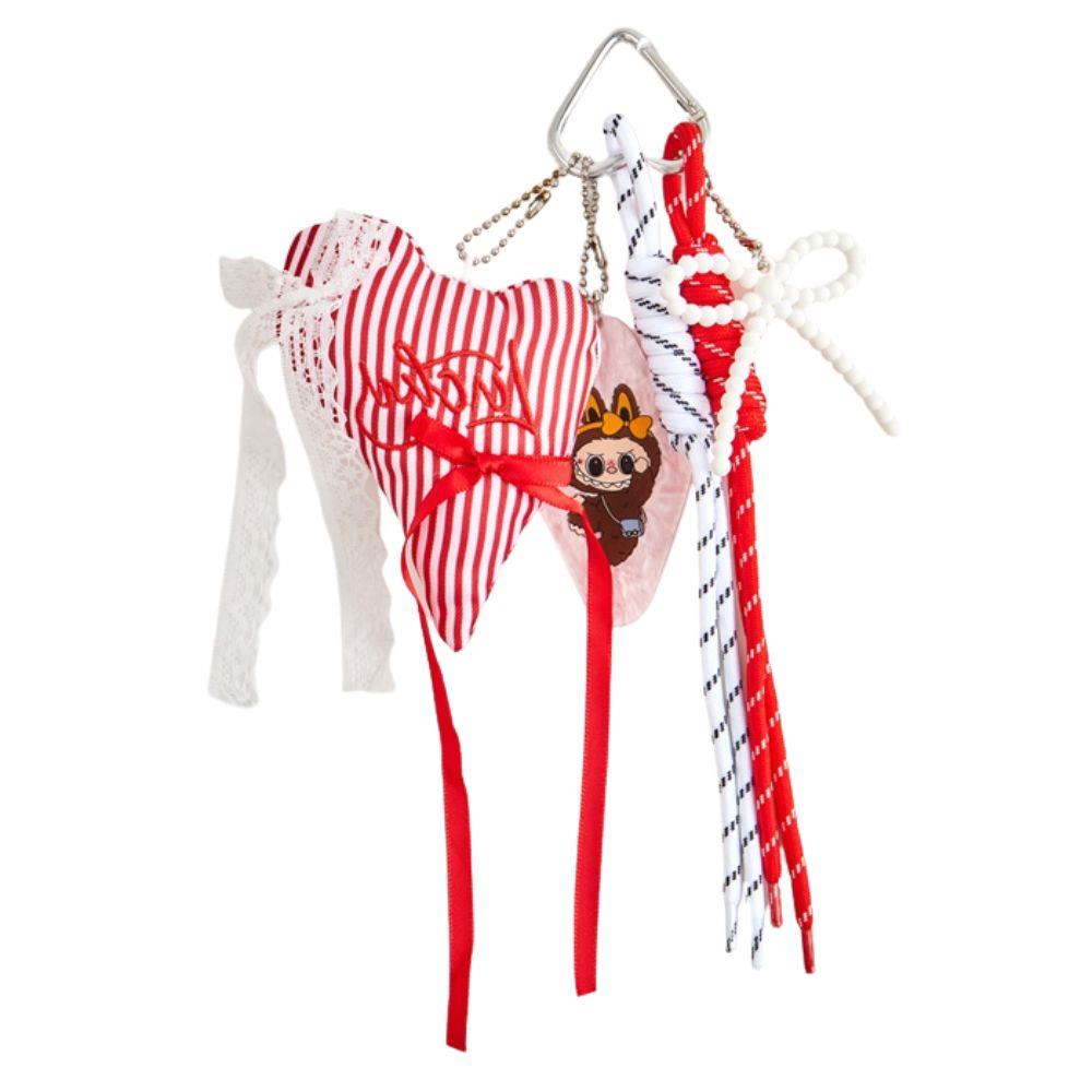 LUCKY STRIPPED HEART ROPE LACE RIBBON BOW BAG CHARM KEYCHAIN