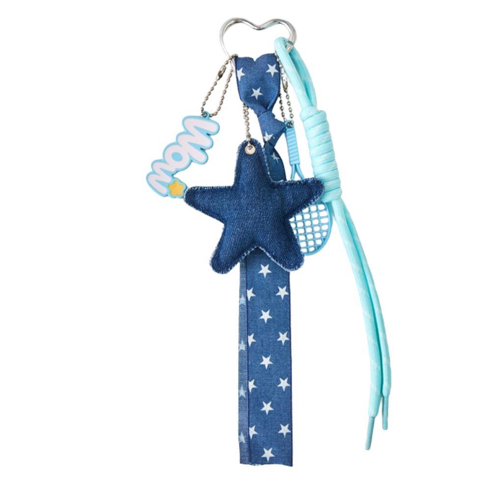 DENIM STAR POLKA DOT RIBBON TENNIS RACKET ROPE BAG CHARM KEYCHAIN