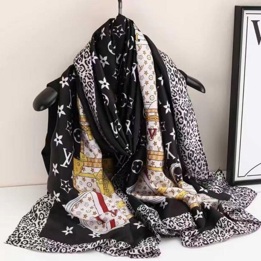 MONOGRAM FLOWER LEOPARD MIX PATTERN SILKY BANDANA NECK SCARF