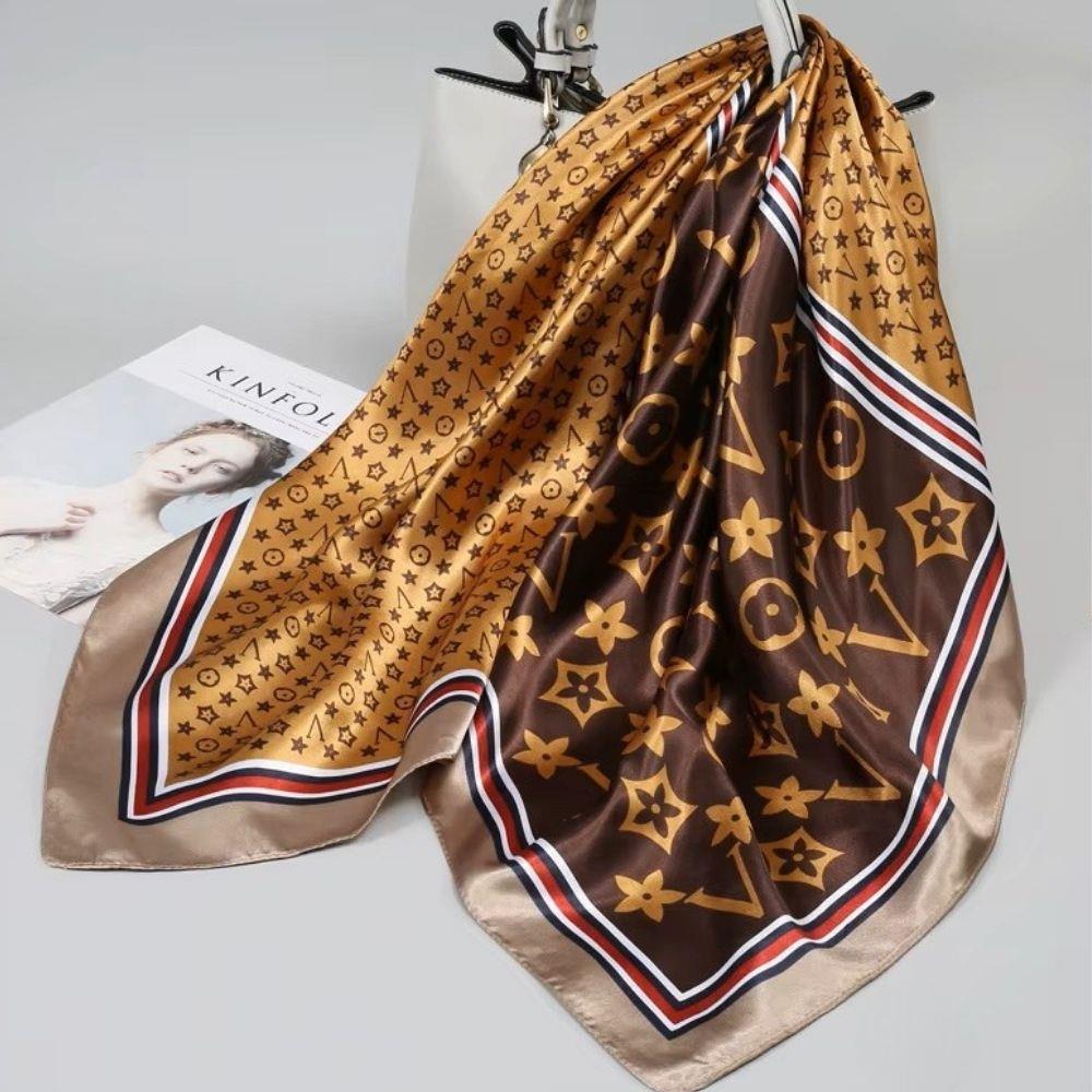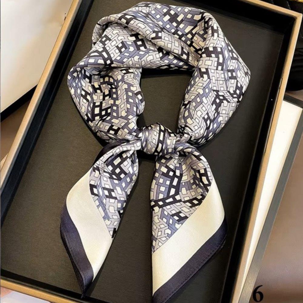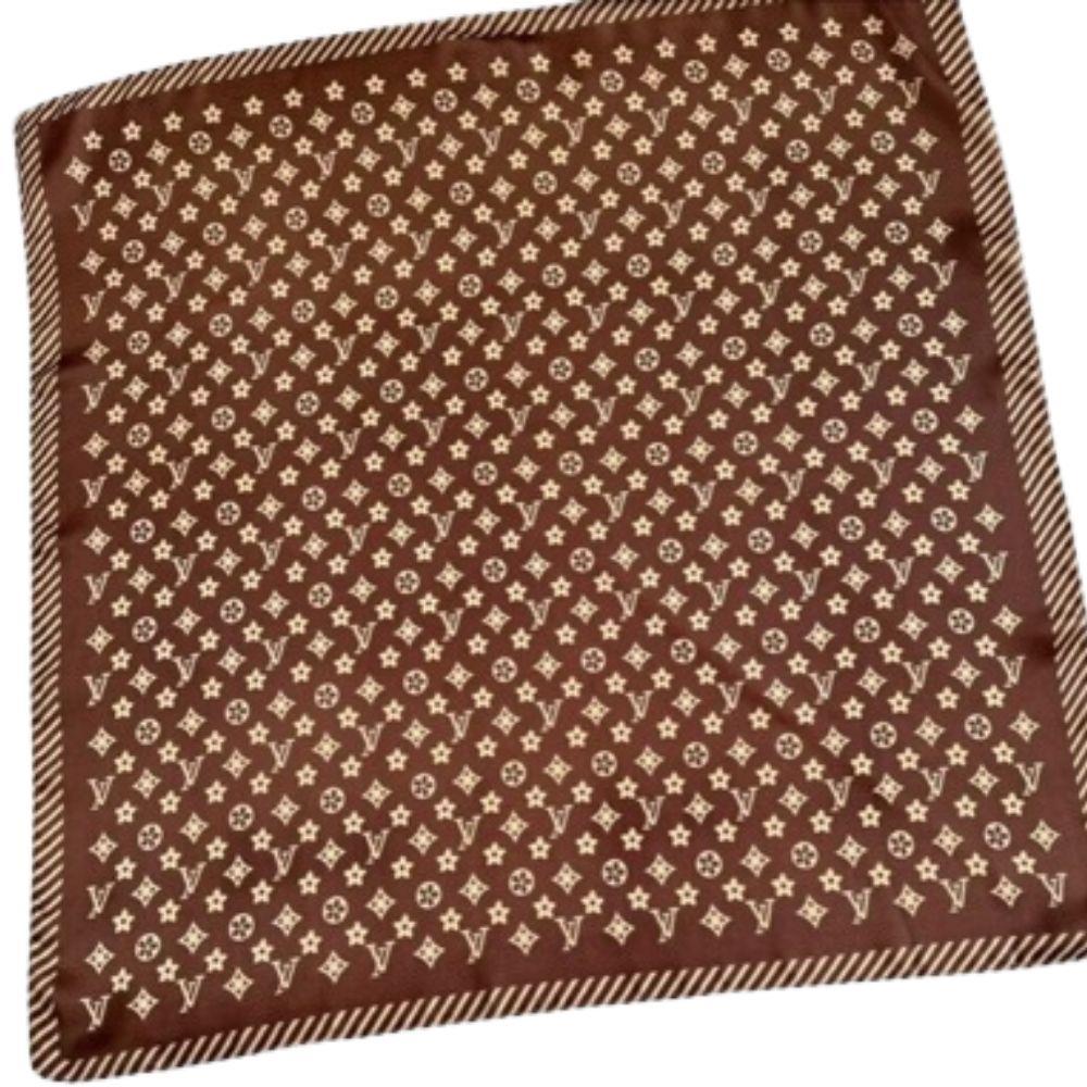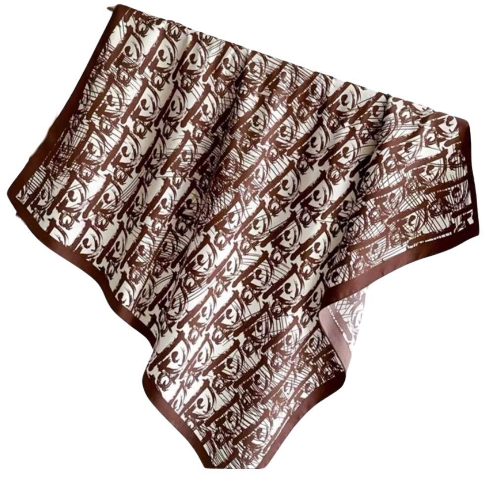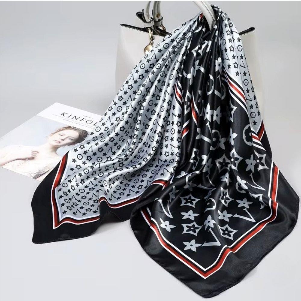 MONOGRAM PATTERN SILKY BANDANA SQUARE NECK SCARF