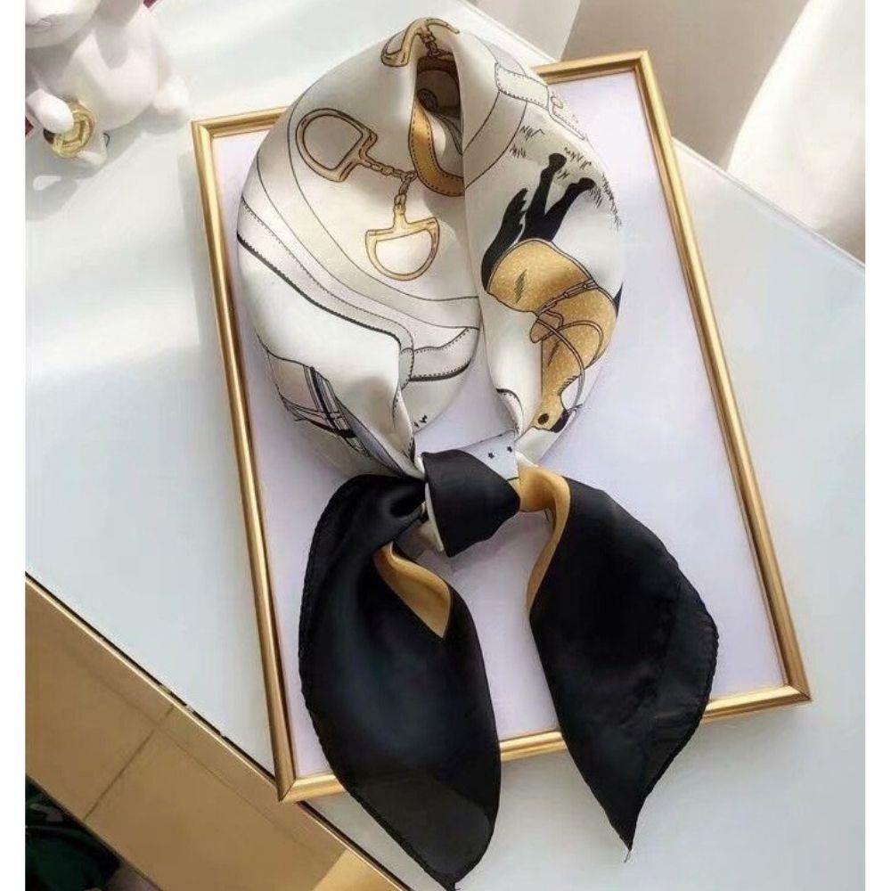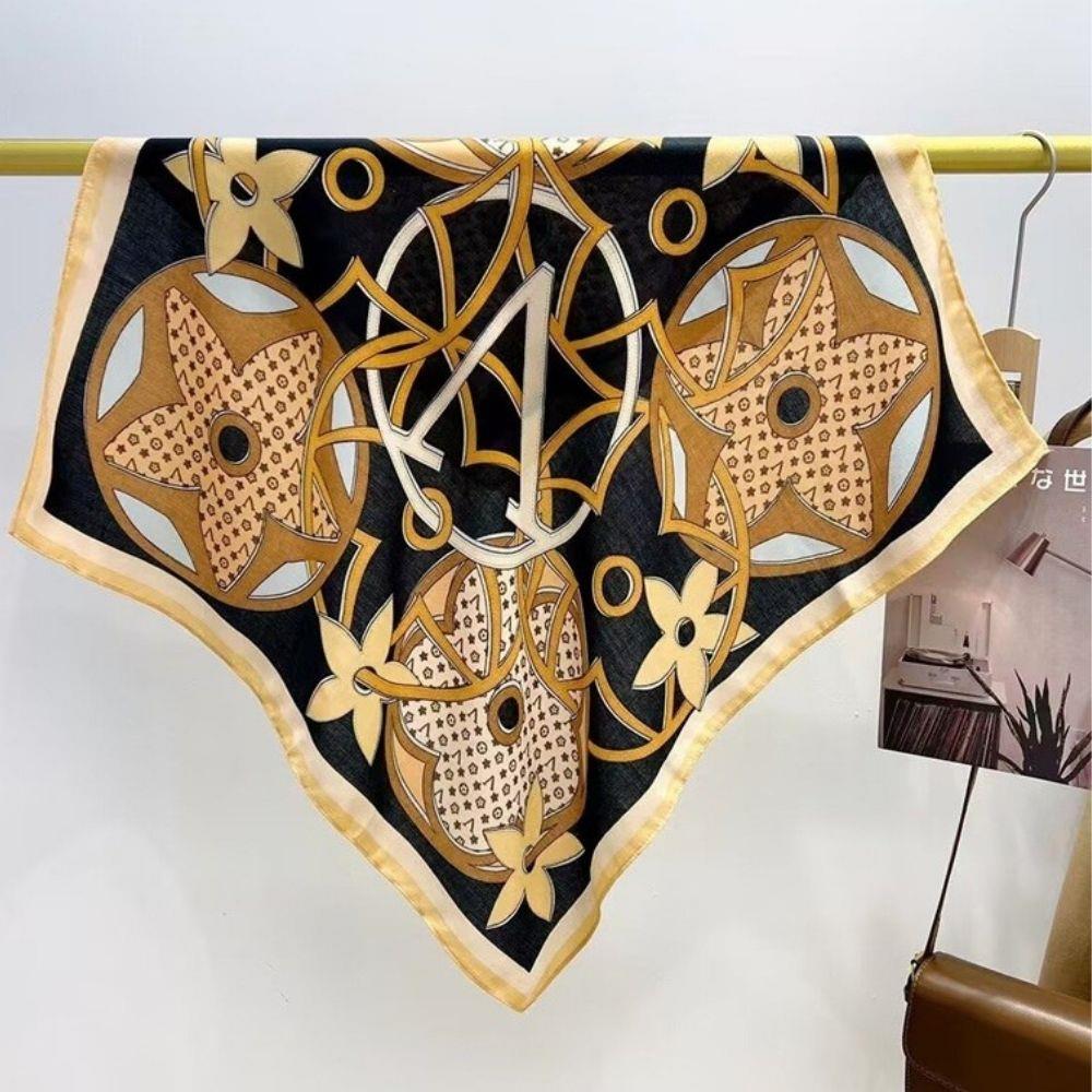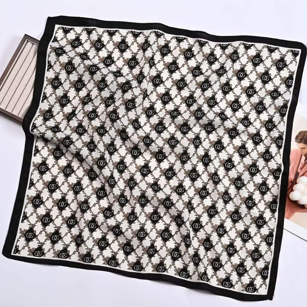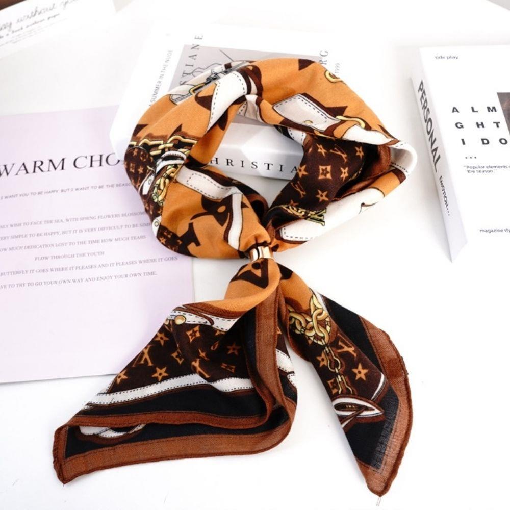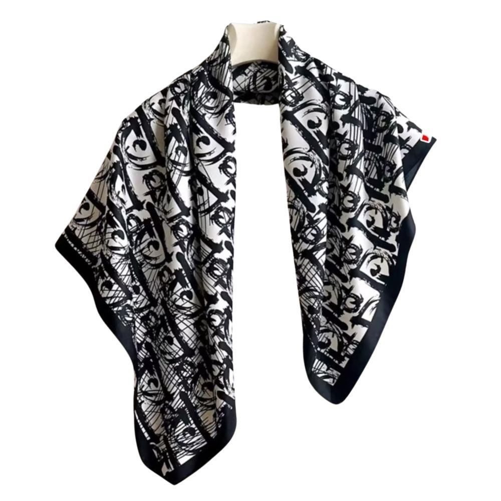 MONOGRAM PATTERN SILKY BANDANA SQUARE NECK SCARF