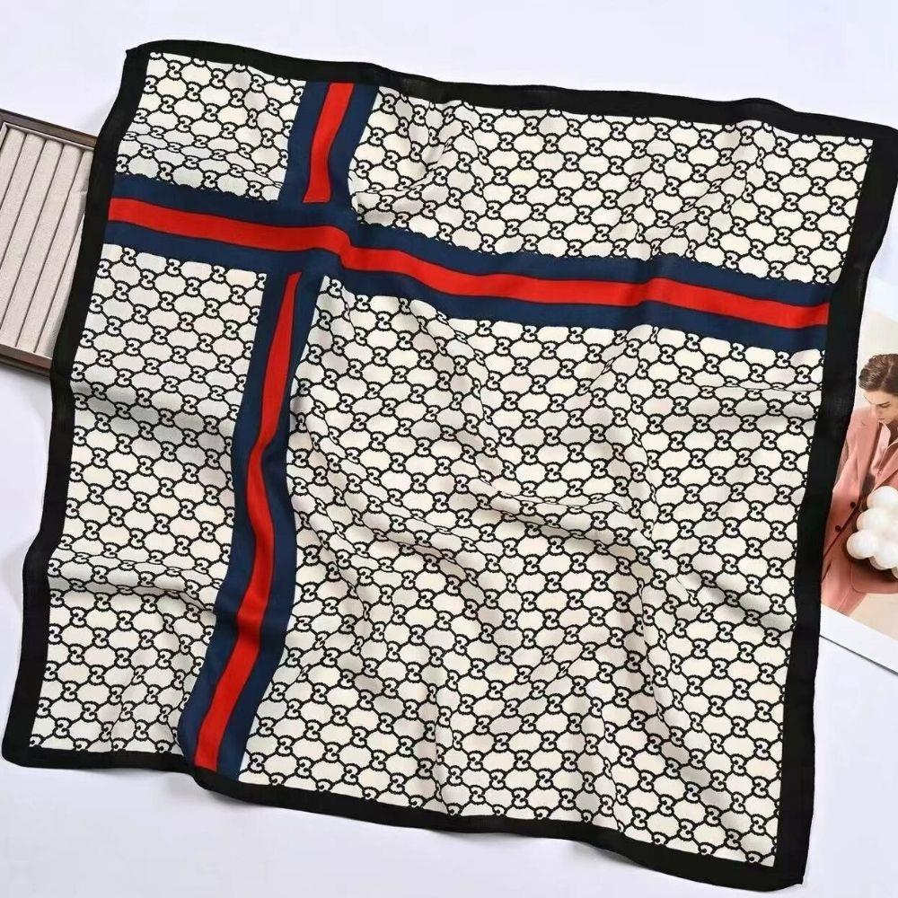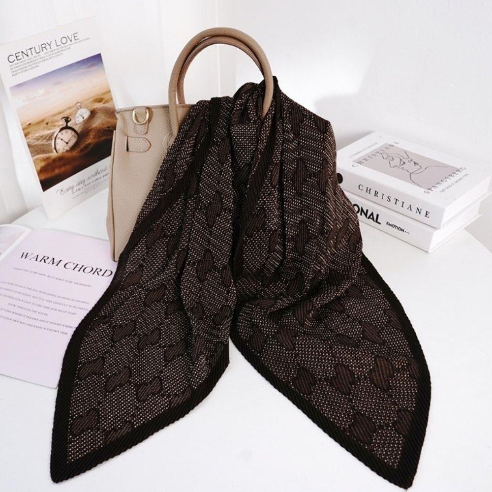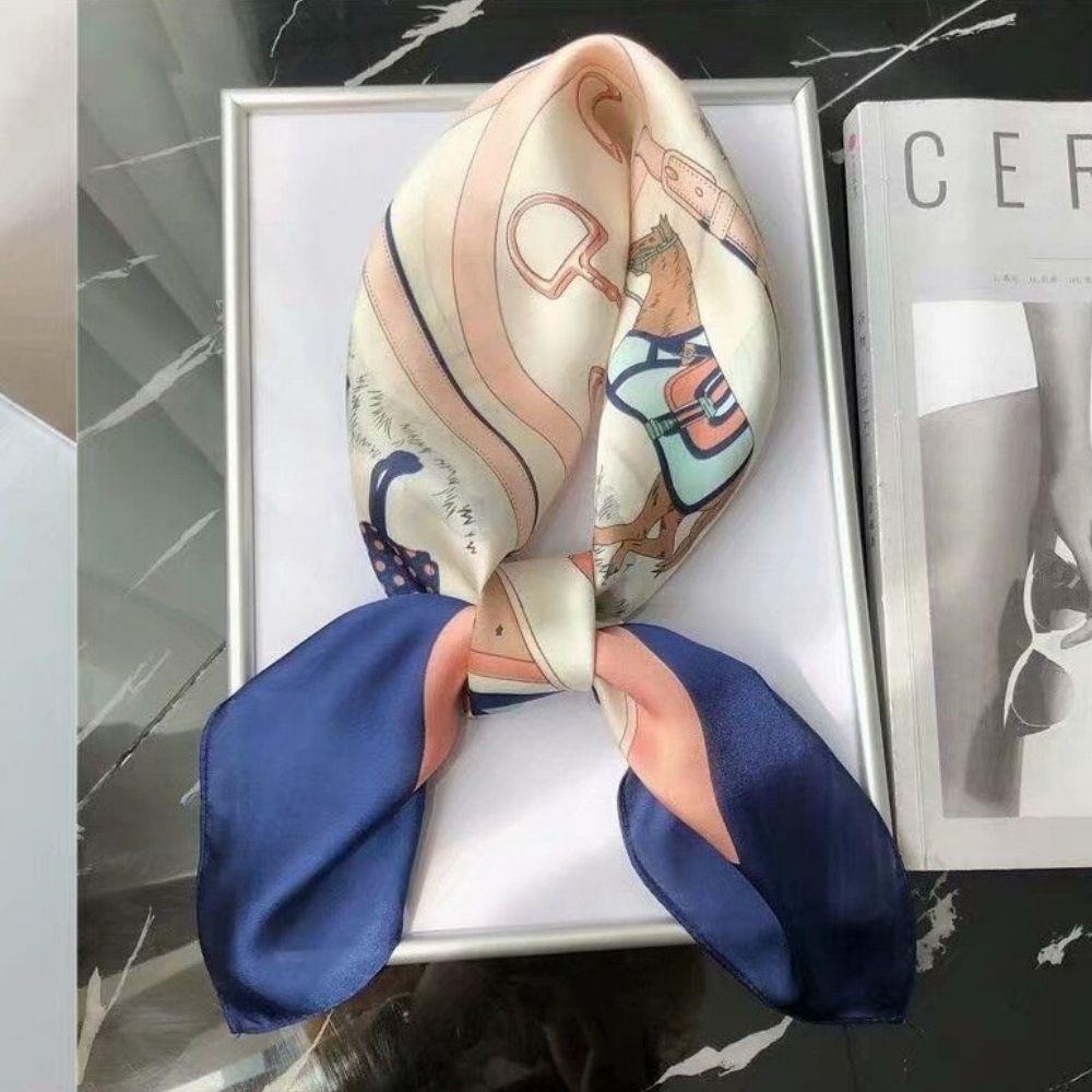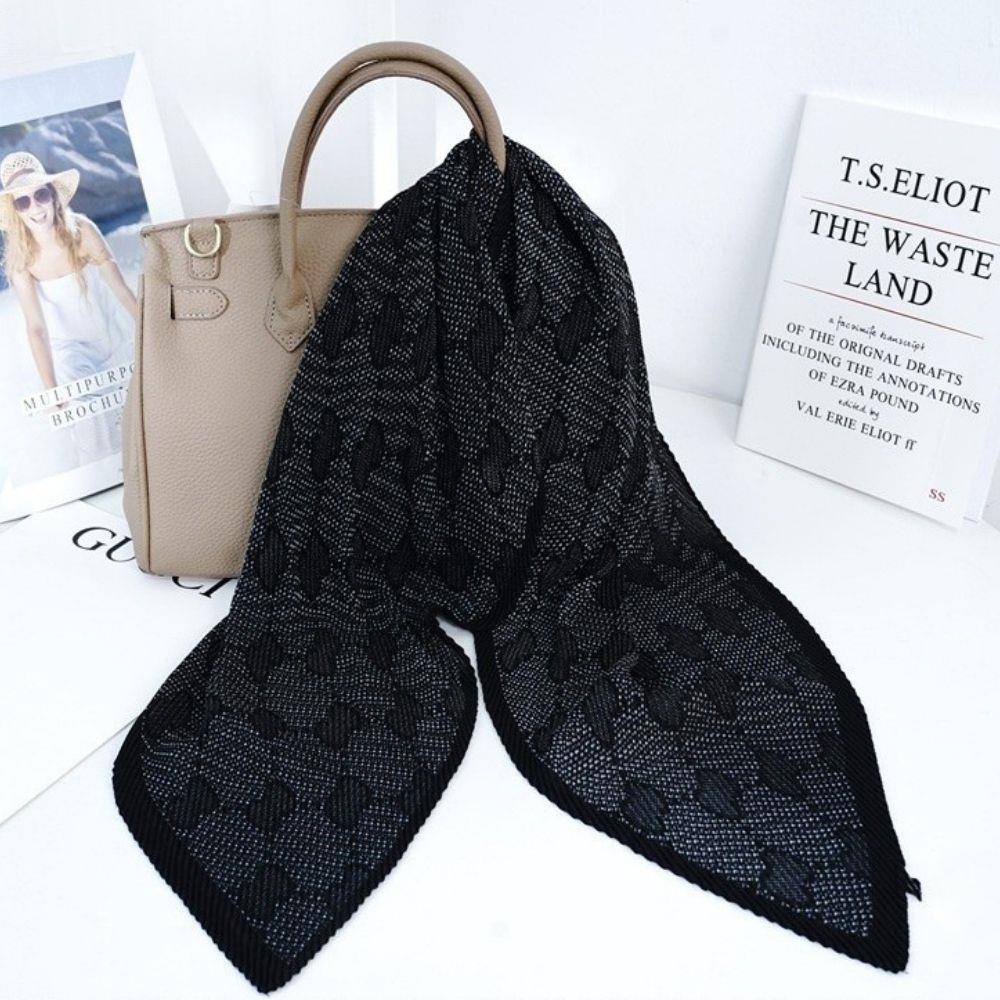 MONOGRAM PATTERN SILKY BANDANA SQUARE NECK SCARF