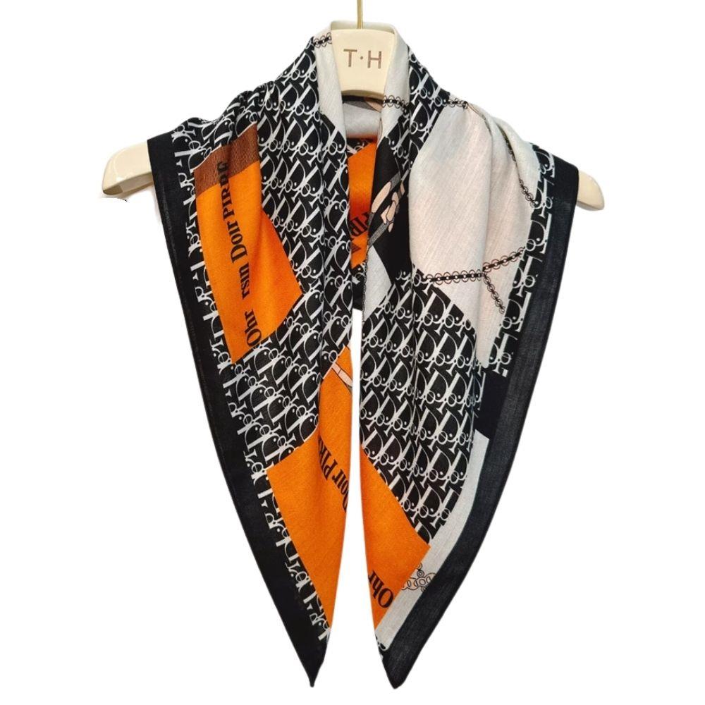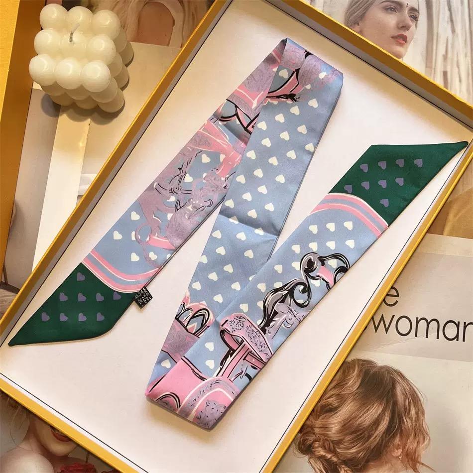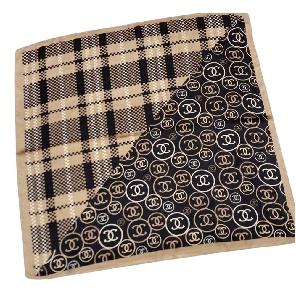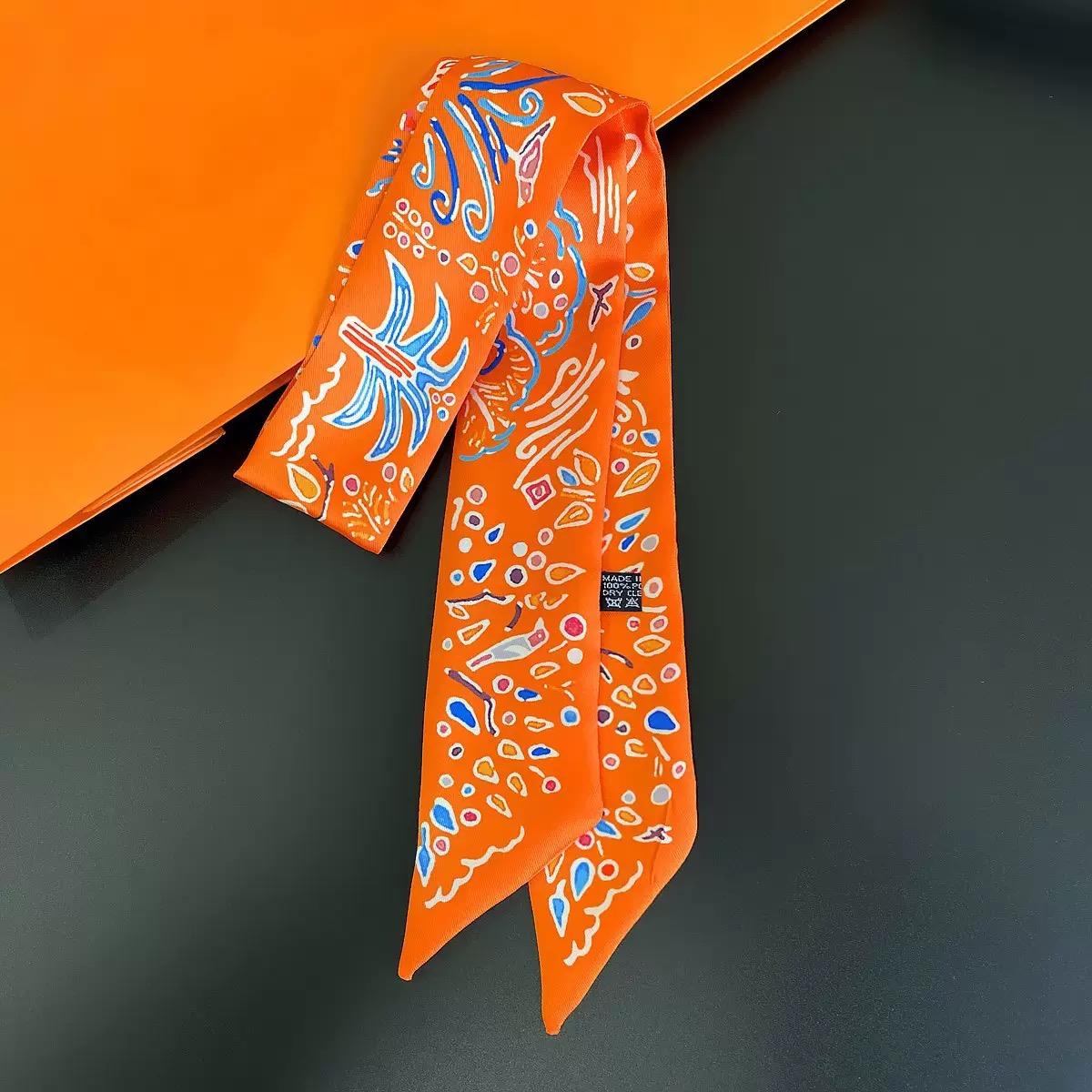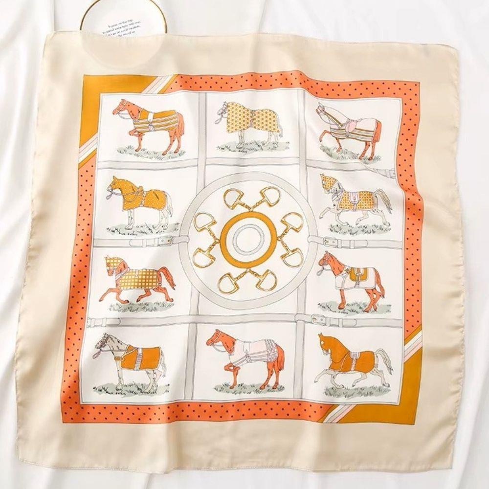 MONOGRAM PATTERN SILKY BANDANA SQUARE NECK SCARF