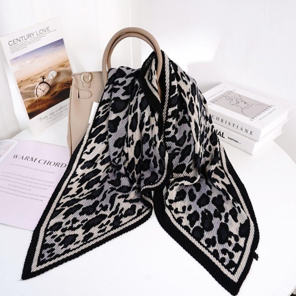 LEOPARD MONOGRAM ACCORDION PLEATED SCARF