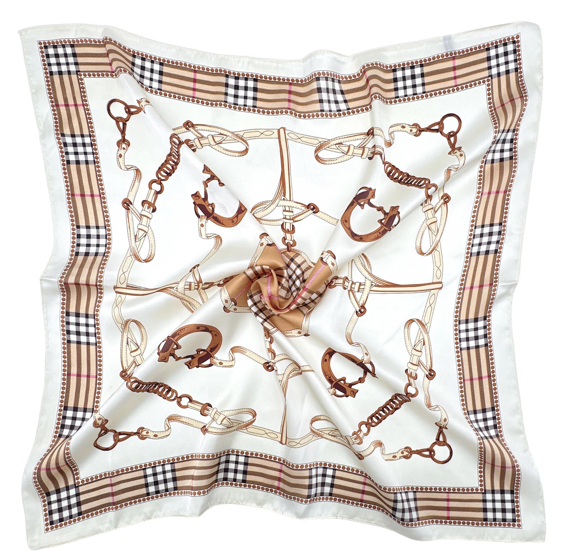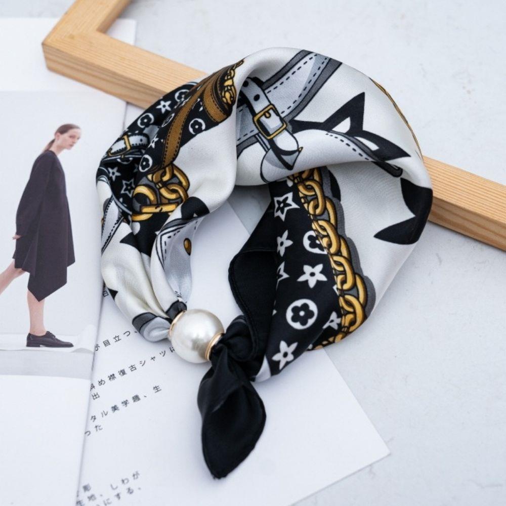 CHAIN BUCKLE GRAPHIC PATTERN BANDANA SQUARE NECK SCARF