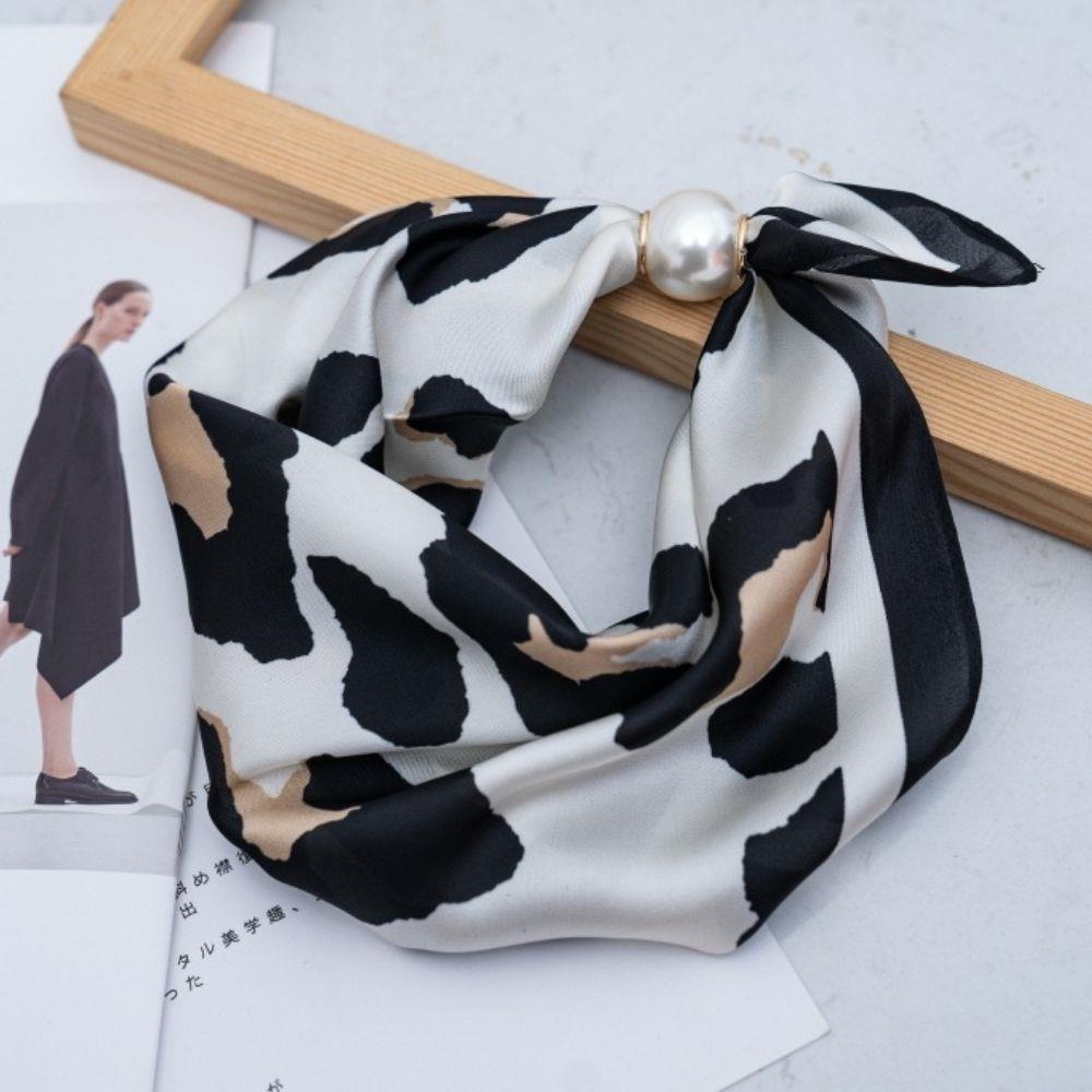LEOPARD CHAIN PATTERN SILKY SATIN SQUARE BANDANA SCARF